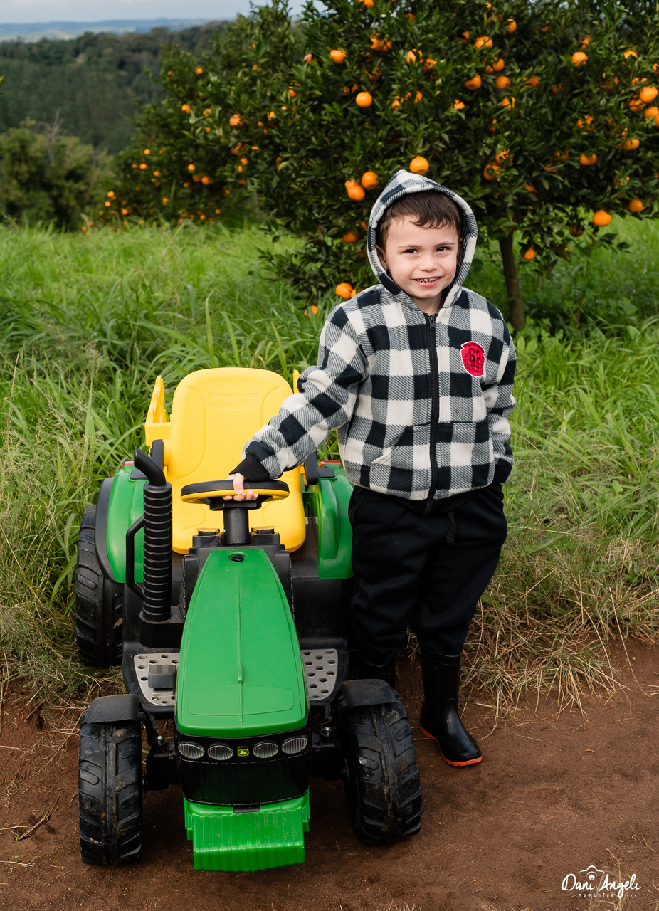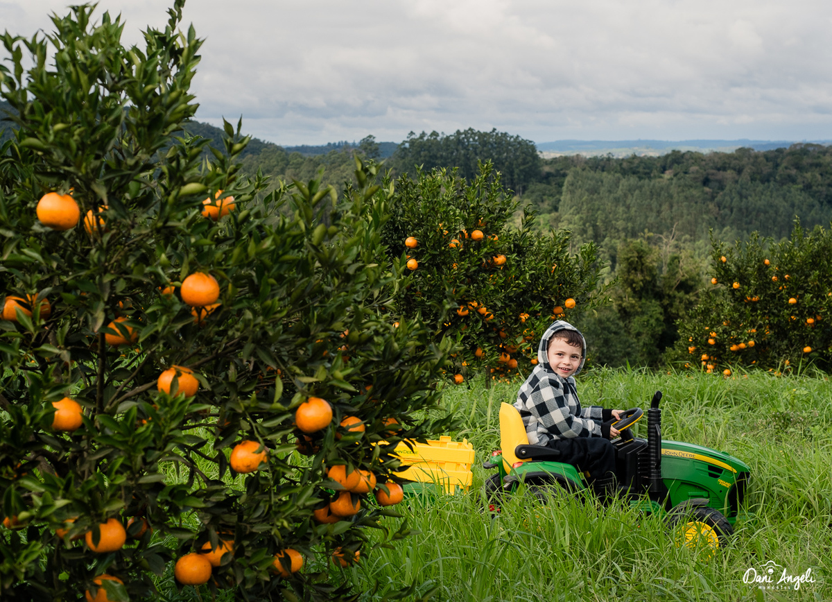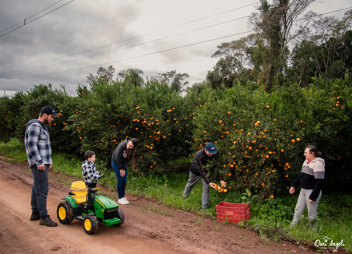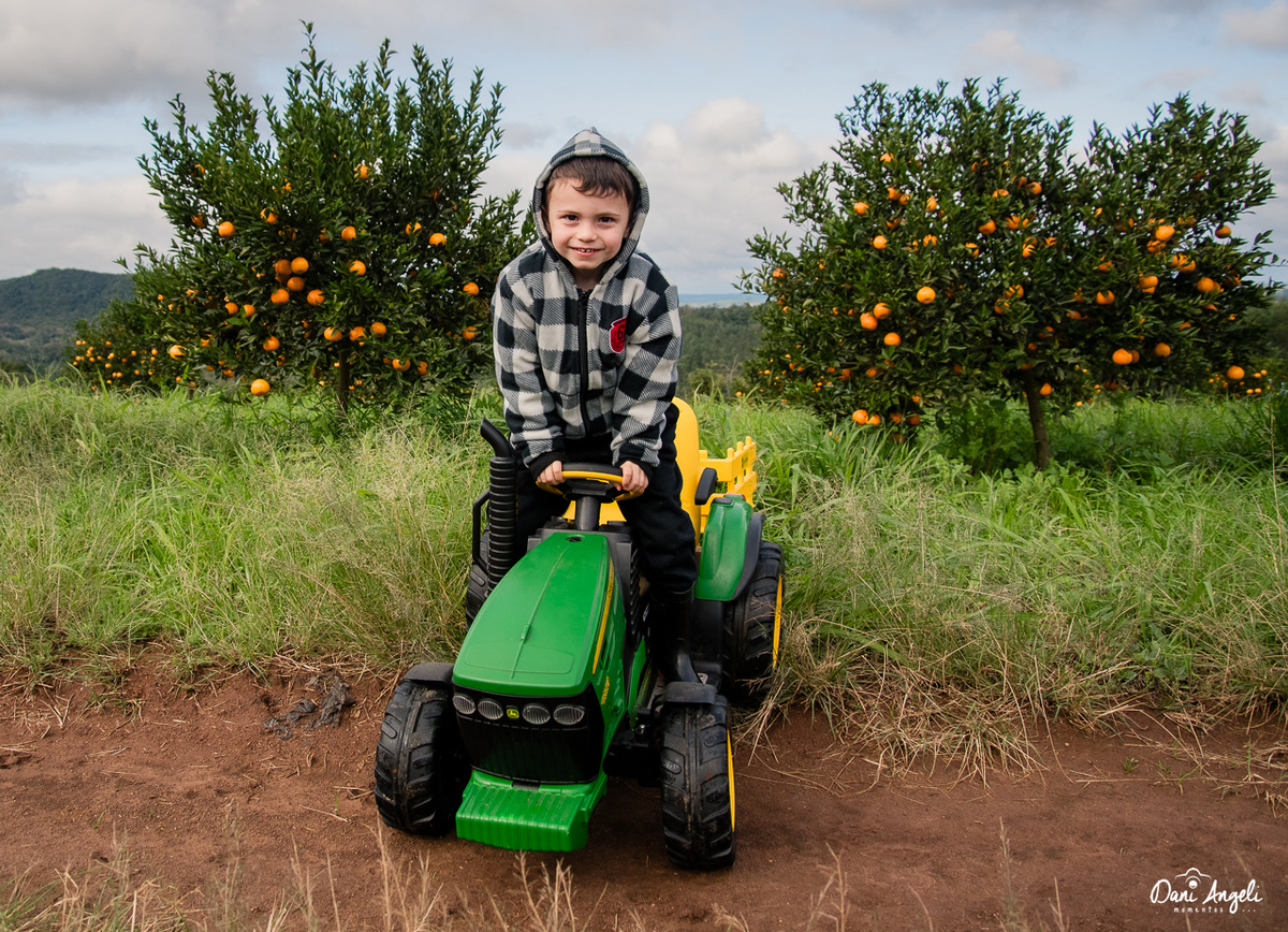 A plantação de bergamotas deu um charme a mais, e ainda teve espaço para uma bandinha de trator improvisada, hehehe! 🎶 Que manhã divertida! E não podemos esquecer da vovó, que babava muito no neto Muriel e aproveitou cada segundo ao lado da família!
