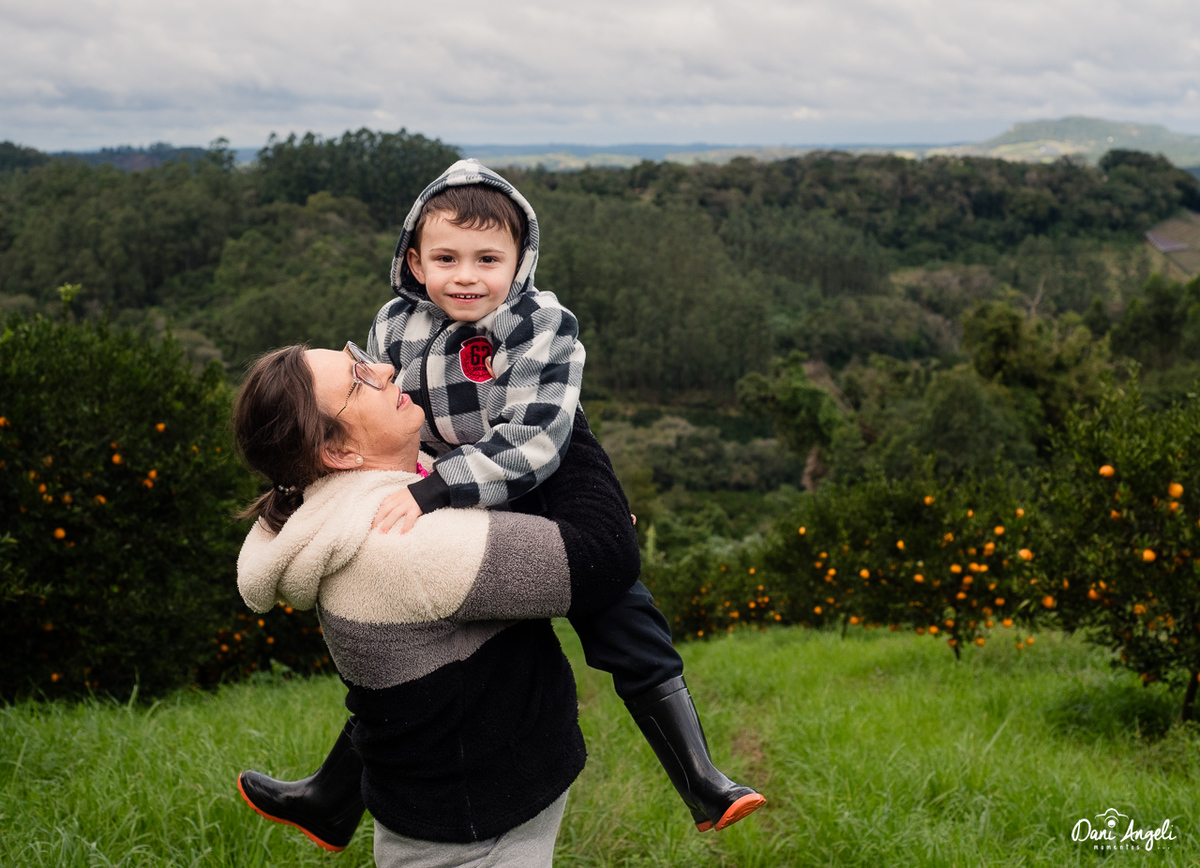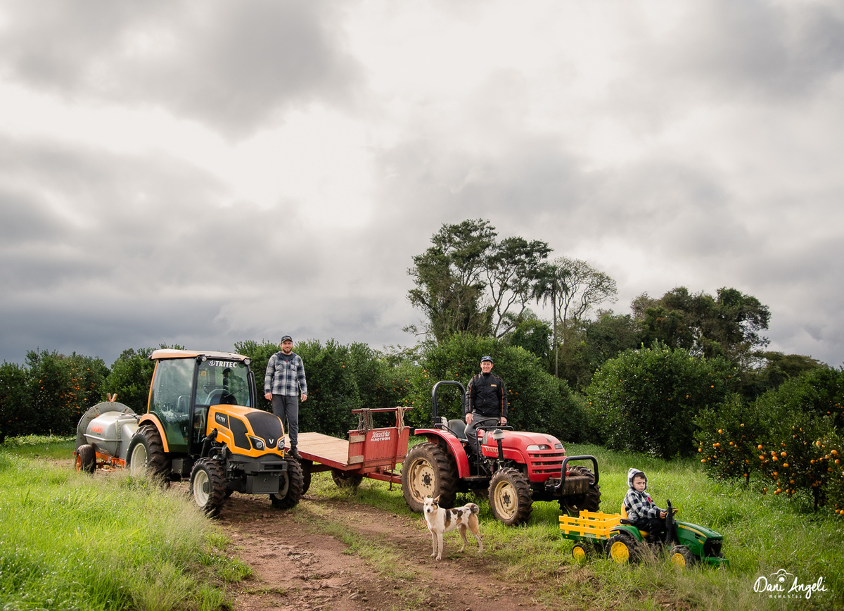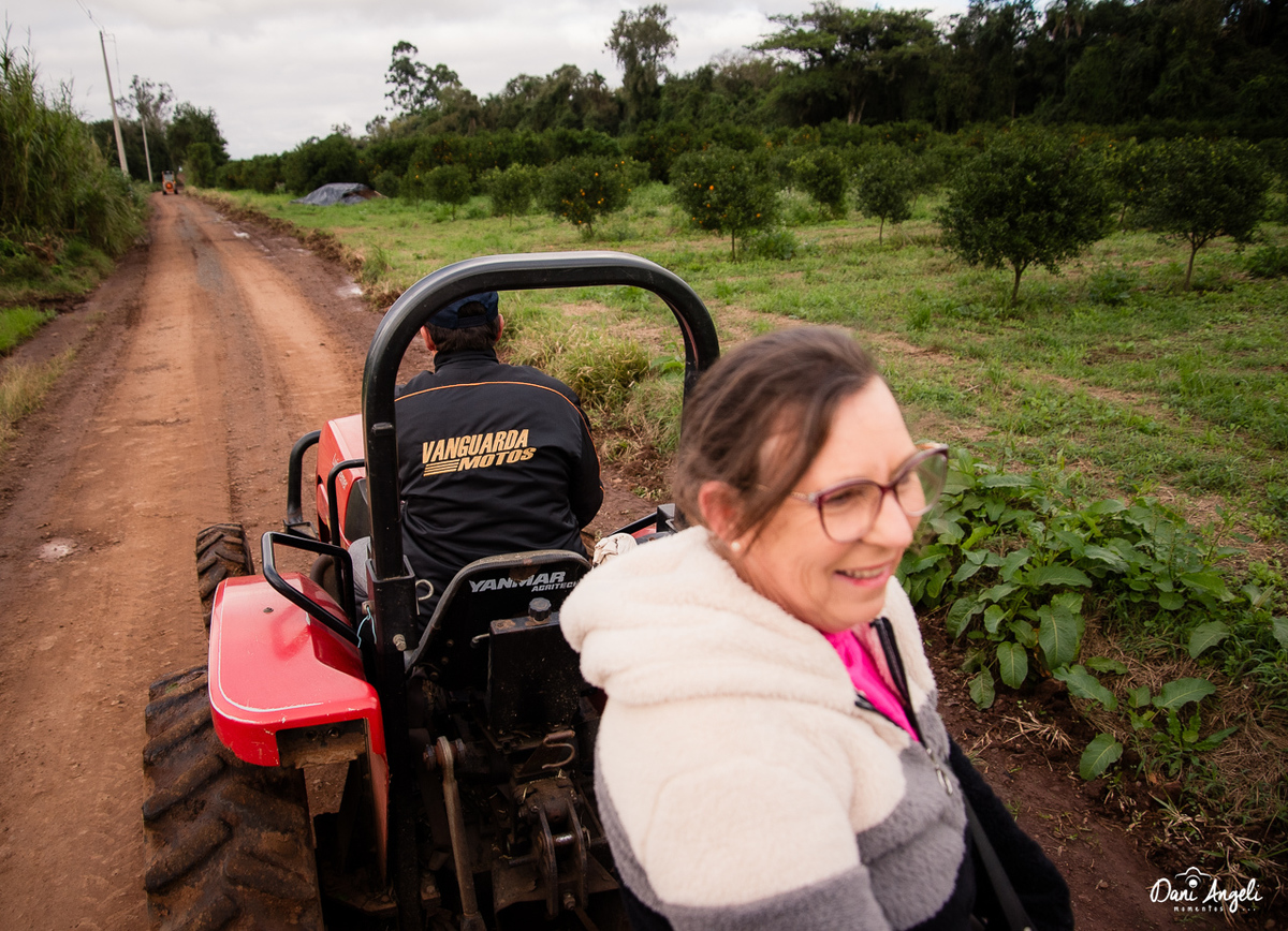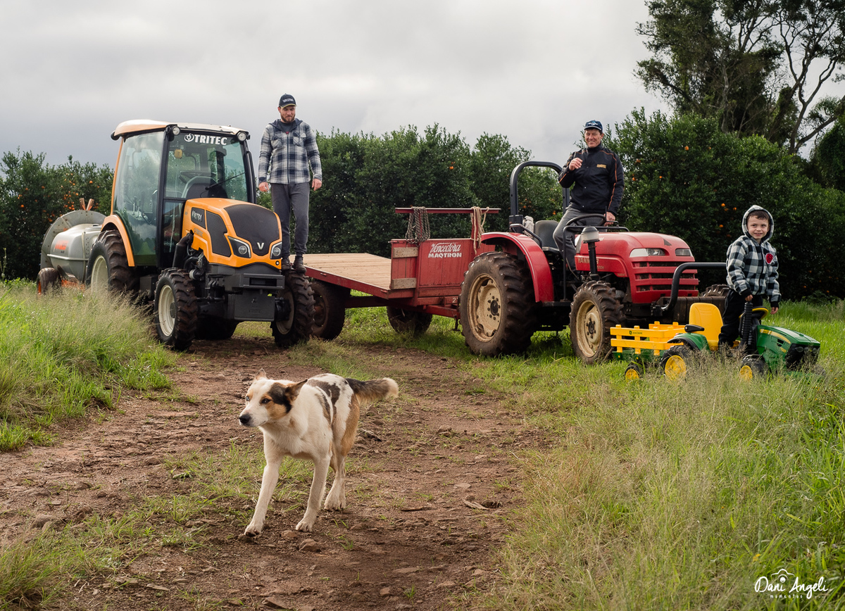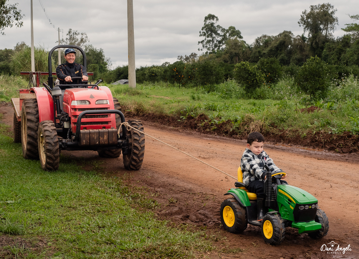 A plantação de bergamotas deu um charme a mais, e ainda teve espaço para uma bandinha de trator improvisada, hehehe! 🎶 Que manhã divertida! E não podemos esquecer da vovó, que babava muito no neto Muriel e aproveitou cada segundo ao lado da família!