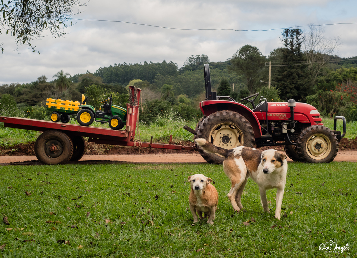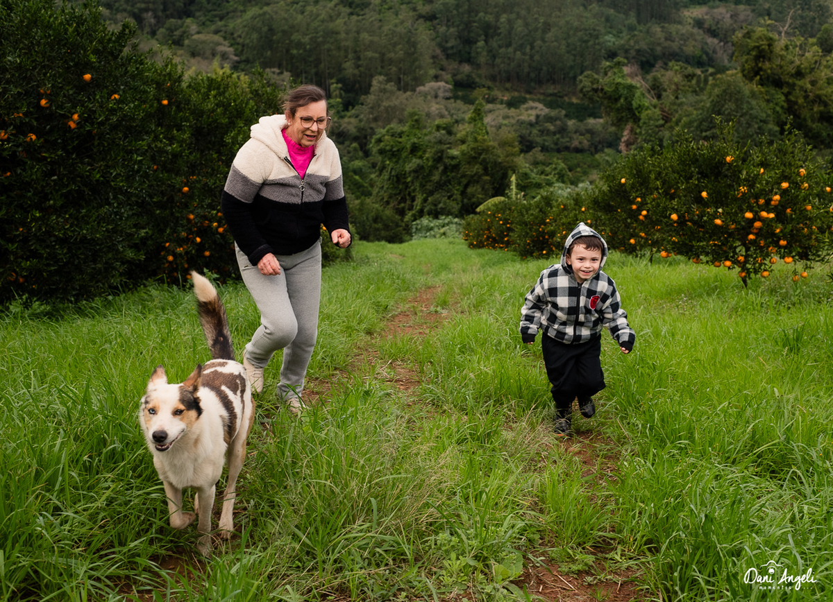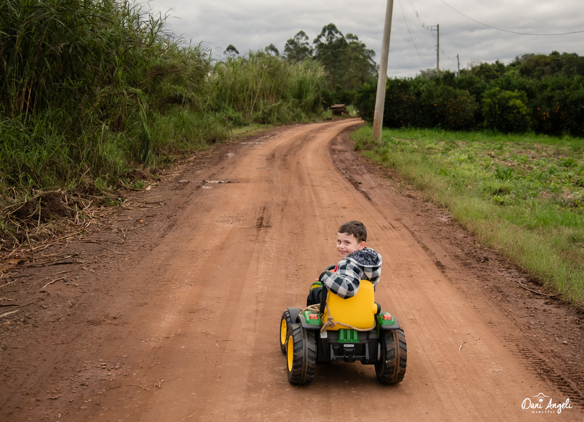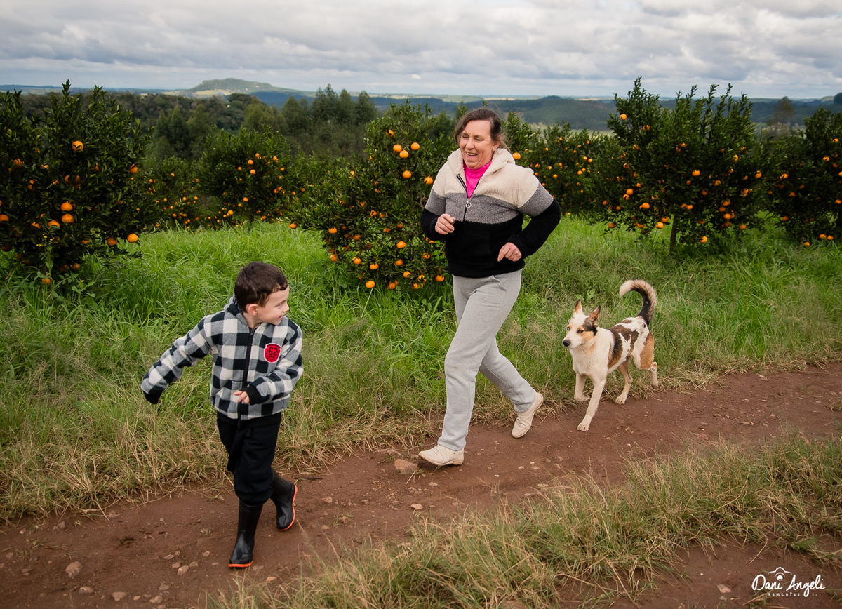 A plantação de bergamotas deu um charme a mais, e ainda teve espaço para uma bandinha de trator improvisada, hehehe! 🎶 Que manhã divertida! E não podemos esquecer da vovó, que babava muito no neto Muriel e aproveitou cada segundo ao lado da família!