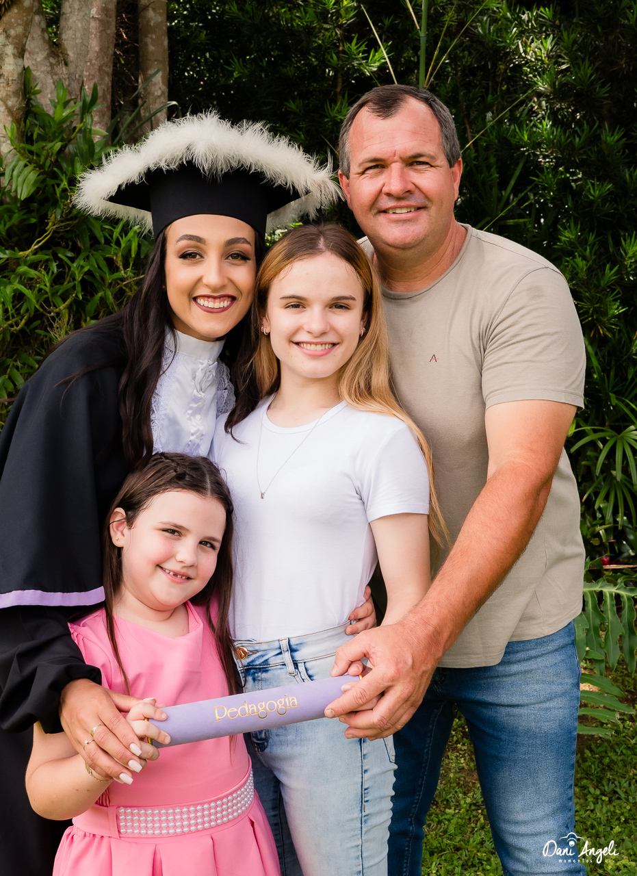 Entre cliques e risadas, fizemos fotos com a família — que participou com aquela alegria boa de quem torce de verdade — e também momentos só dela, de toga, celebrando tudo o que essa caminhada significou.