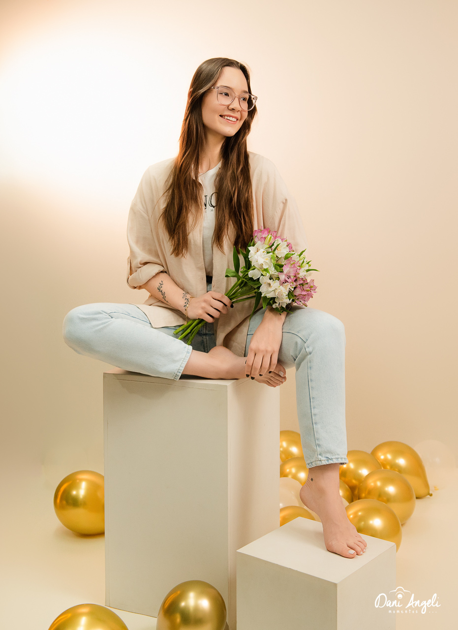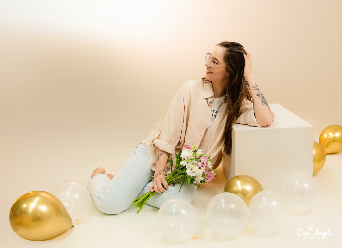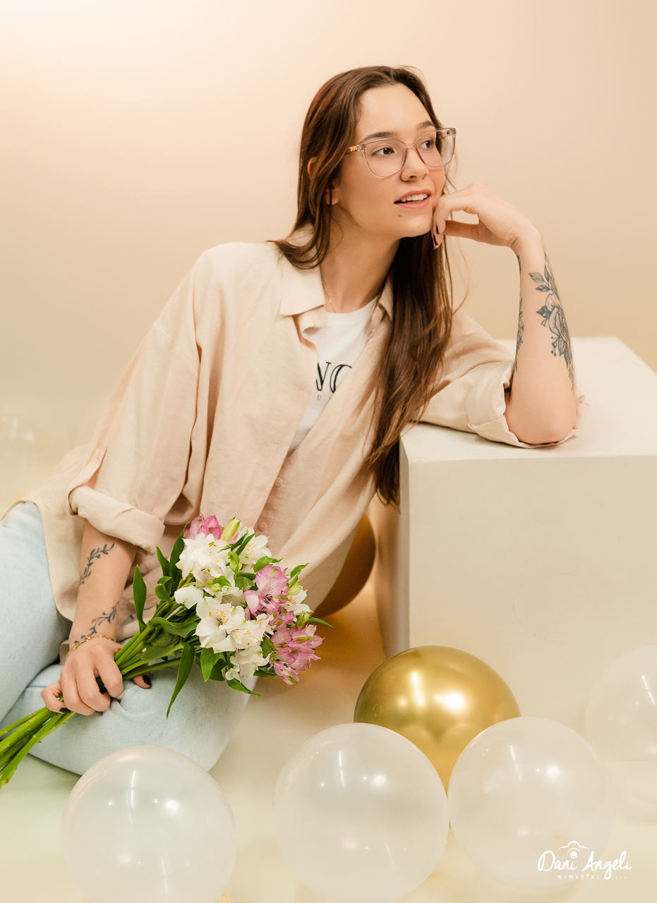 A Bruna decidiu comemorar seus 23 anos de uma forma diferente: com um Ensaio de Aniversário em estúdio, aqui no Dani Angeli Momentos. O resultado? Um ensaio leve, delicado e cheio de personalidade, exatamente como ela queria.