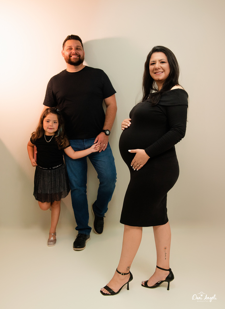 A Diandra chegou ao estúdio acompanhada do Eduardo e da pequena Cecília, trazendo na barriga (e no coração) a espera pelo Ramon.