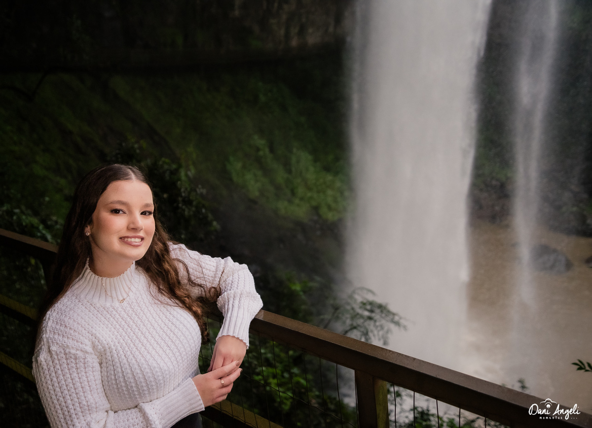 No interior de Farroupilha, o deslumbrante Salto Ventoso foi o cenário escolhido para as fotos da Maiane. Que lugar incrível! Mesmo com o sol não colaborando, a energia e a alegria da Maiane foram suficientes para iluminar tudo ao redor. ✨