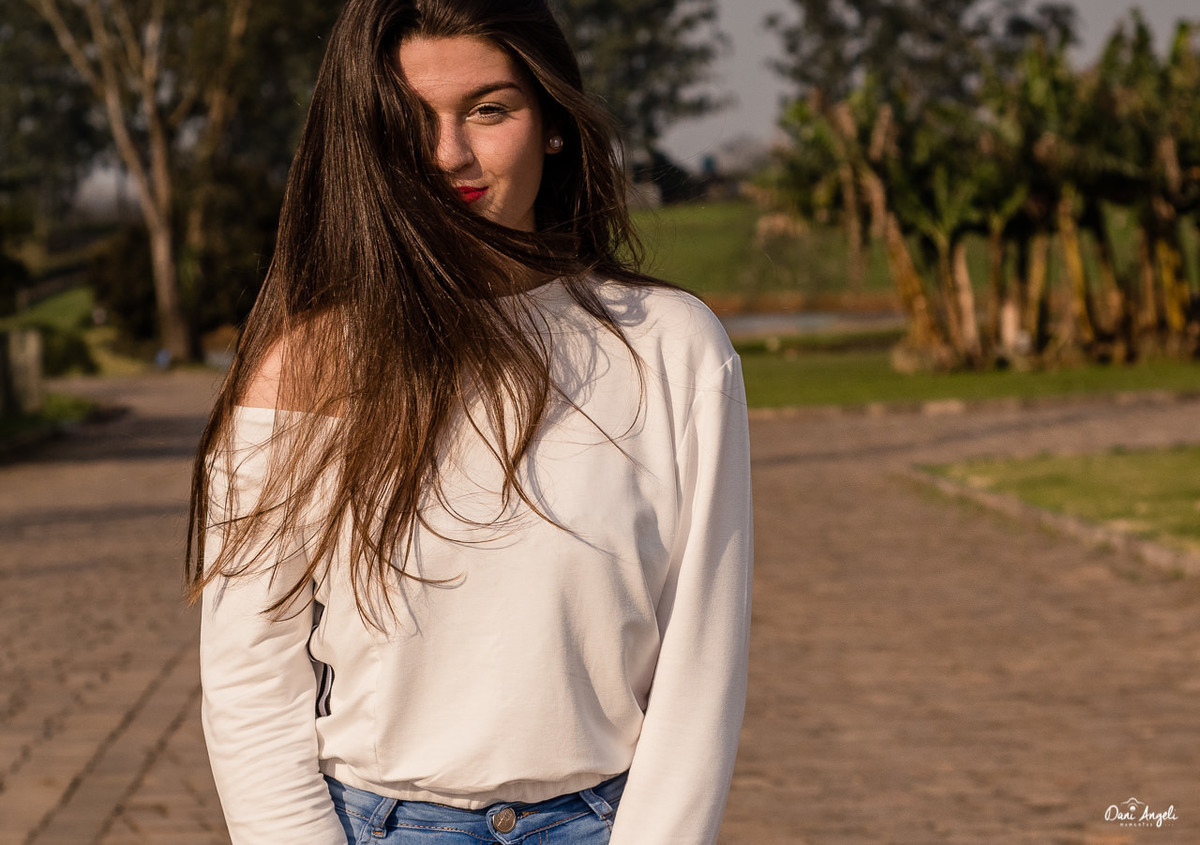 Nosso olhar mostrou uma menina envergonhada, mas que mesmo assim sabe muito bem o que quer. Tem um sorriso lindo. E gosta de mostrar.