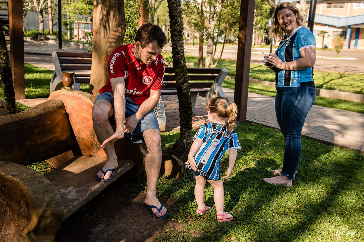Cada um com seu time preferido e muita disputa para convencer a Luiza, para continuar no time da mamãe, ou mudar para o time do papai.