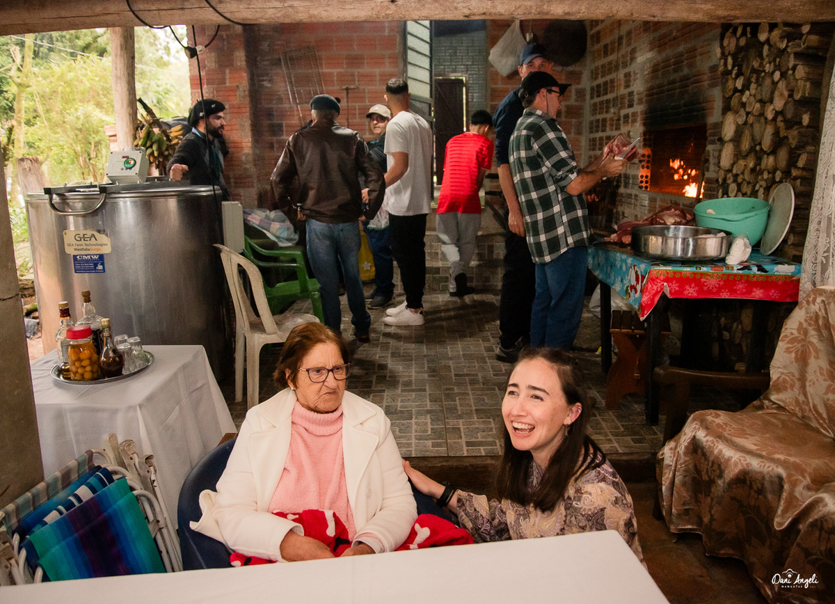 A casa estava cheia de alegria, com filhos, parentes e amigos celebrando essa data tão especial. Até seu genro, que veio da Europa, estava lá para conhecê-lo – e, mesmo com idiomas diferentes, a linguagem da felicidade foi universal!