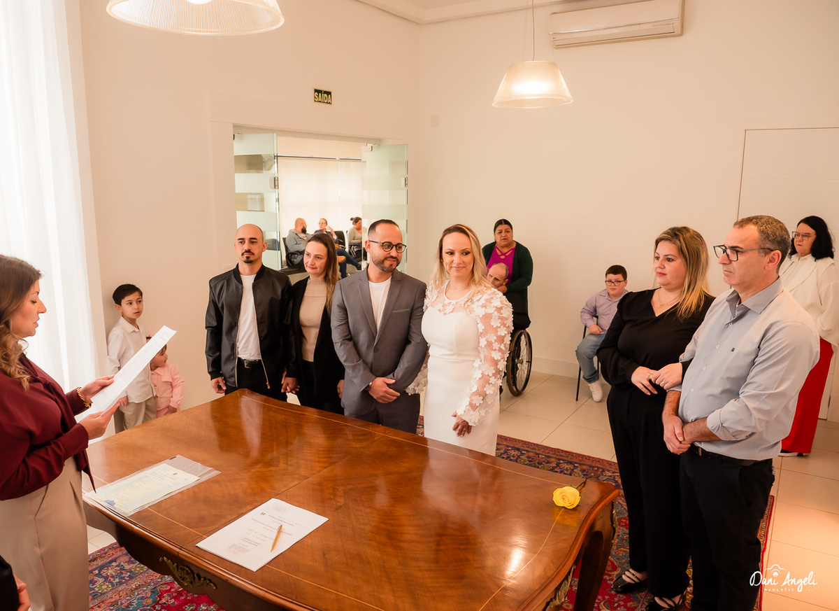 E o casamento civil da Silvana e do Claudemir, realizado no Cartório Mezzari, em Montenegro/RS, foi exatamente assim.