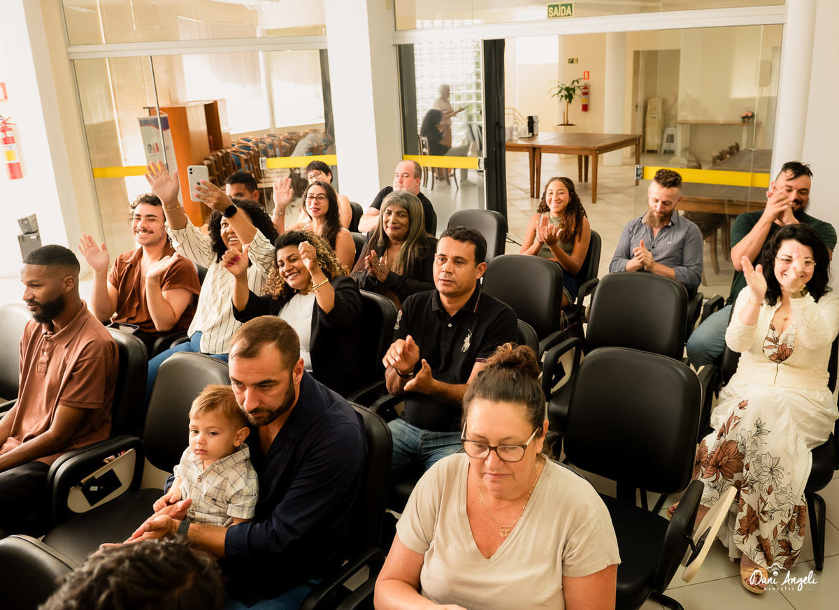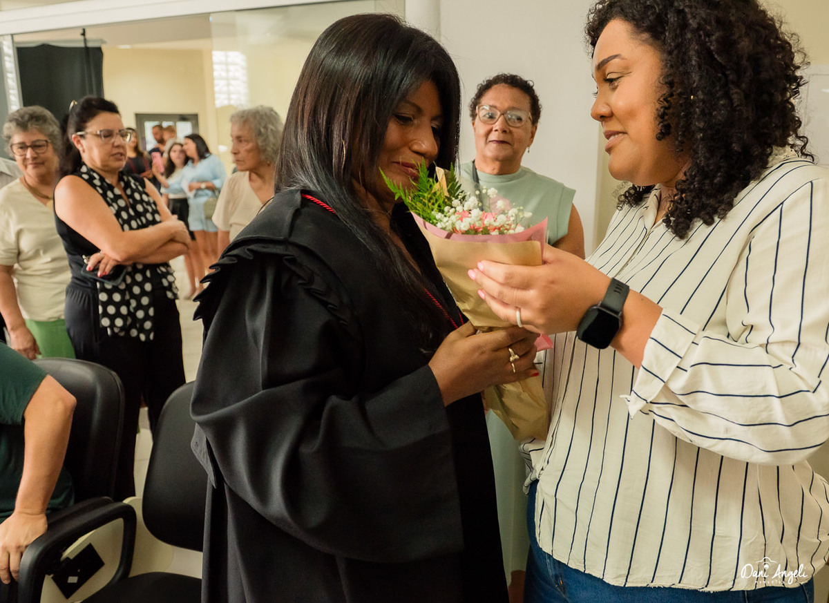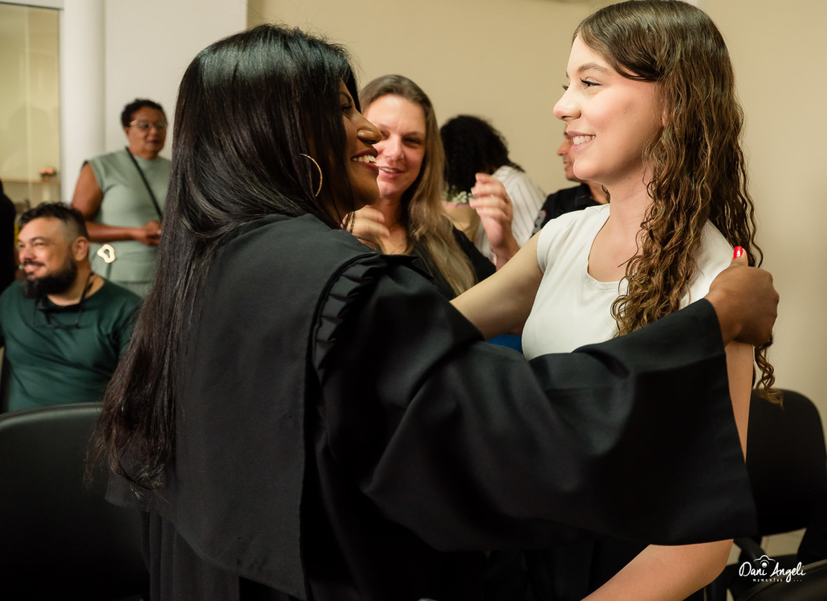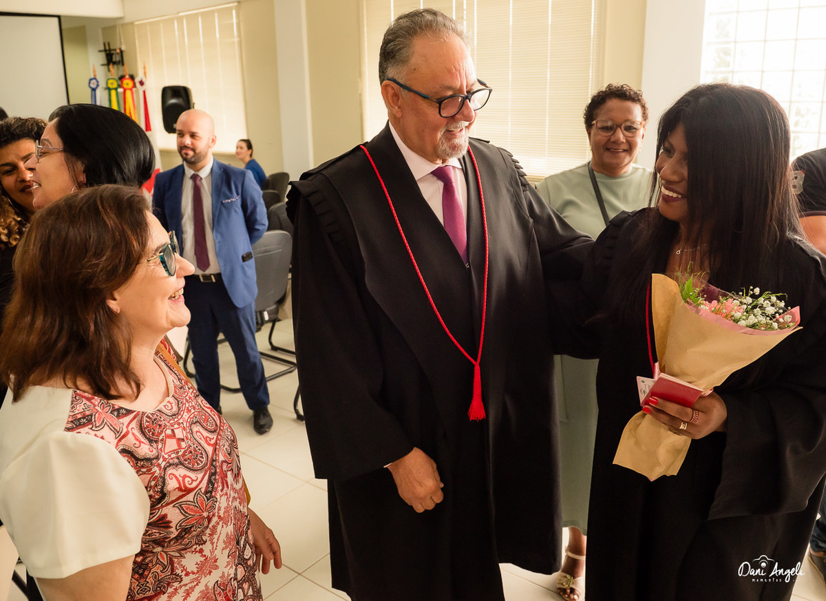 A mãe da Leila estava ali, com aquele olhar que não precisa de discurso. Era orgulho puro. Daqueles que transbordam no sorriso.