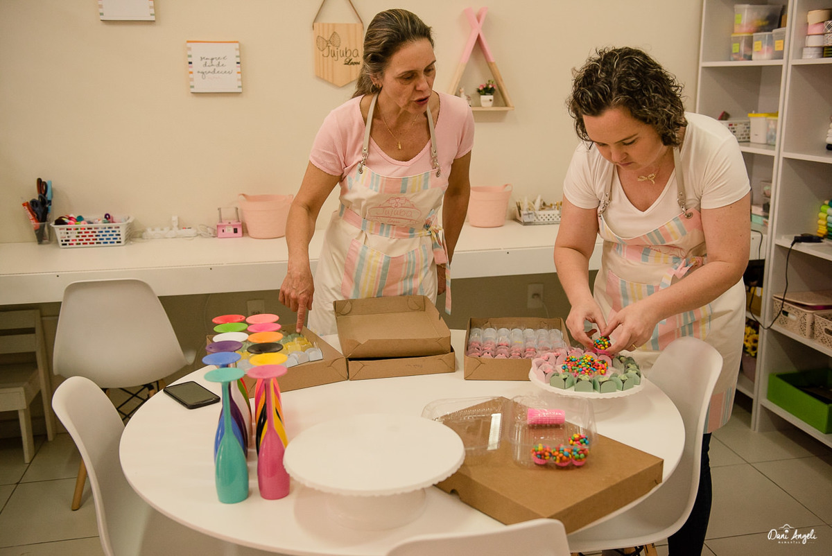 Tem o cheirinho da Jujuba, o carinho do atendimento e o atelier fica ali mesmo. Facilitando e agilizando as entregas para as clientes.