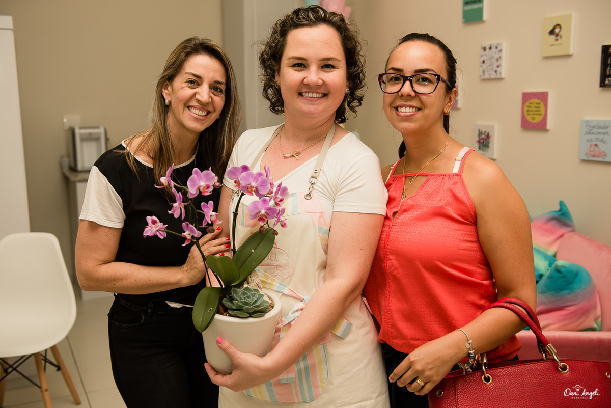 E as sócias, ahhh as sócias. Elas estavam realizadas. Foi lindo perceber no rostinho de cada uma a felicidade do sonho sendo realizado. As amizades, o carinho das clientes, os beijinhos das pequenas e a presença da família ali do ladinho apoiando. Os maridos até tentaram apresentar os produtos, meio durões, mas cheios de orgulho destas duas mulheres. Essas duas que merecem nosso respeito e todo o carinho.