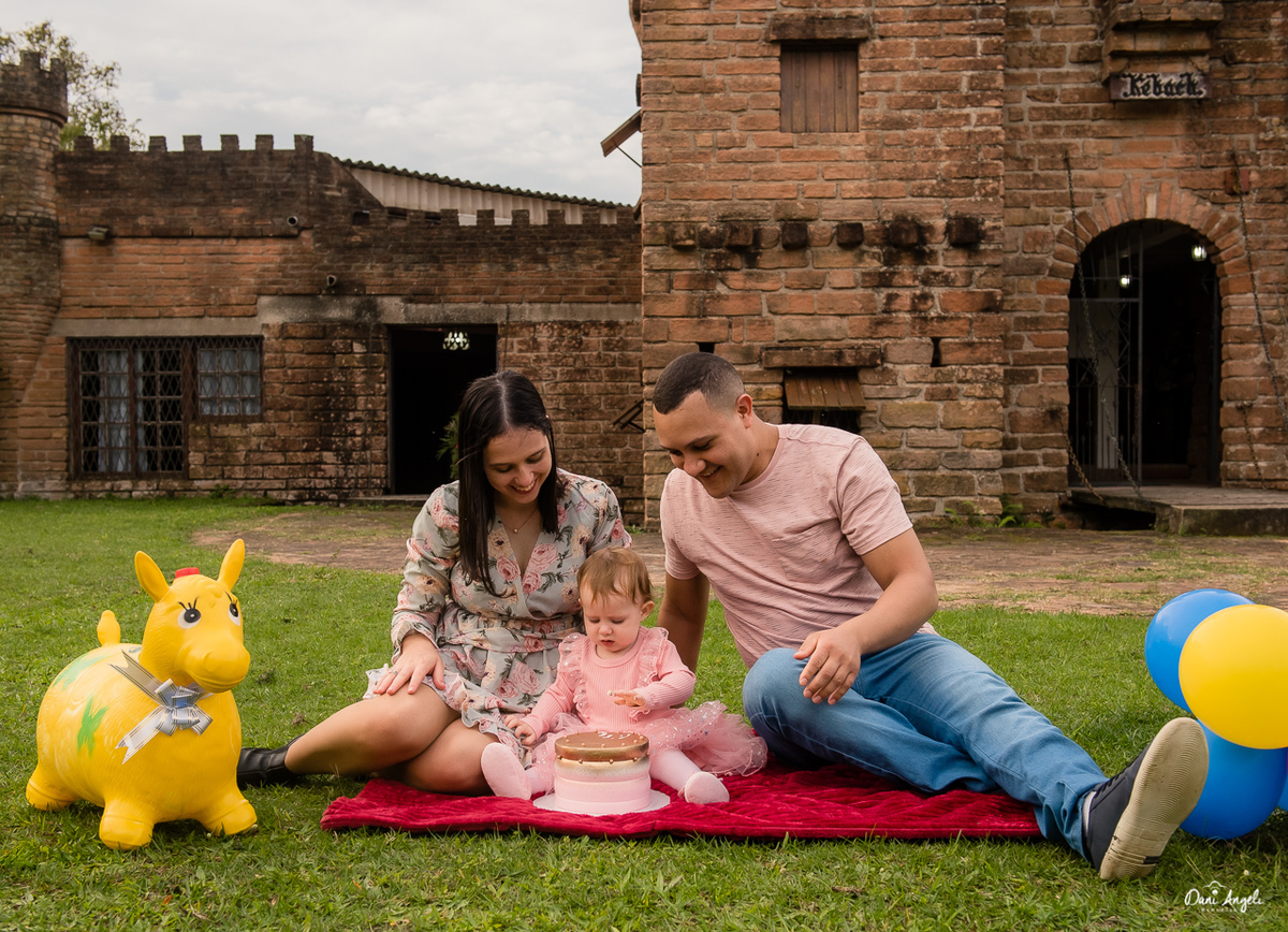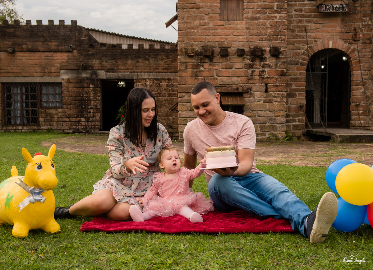 Entre uma brincadeira e outra, as poses foram acontecendo. A cada momento uma novidade. Um cochilo, um chamego da mamãe e do papai, e finalmente um bolo lindo para provar.