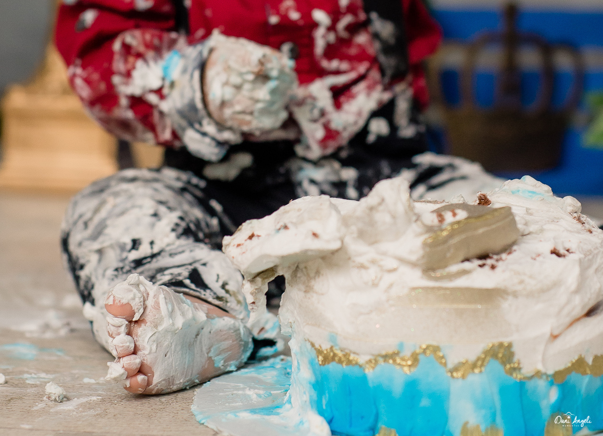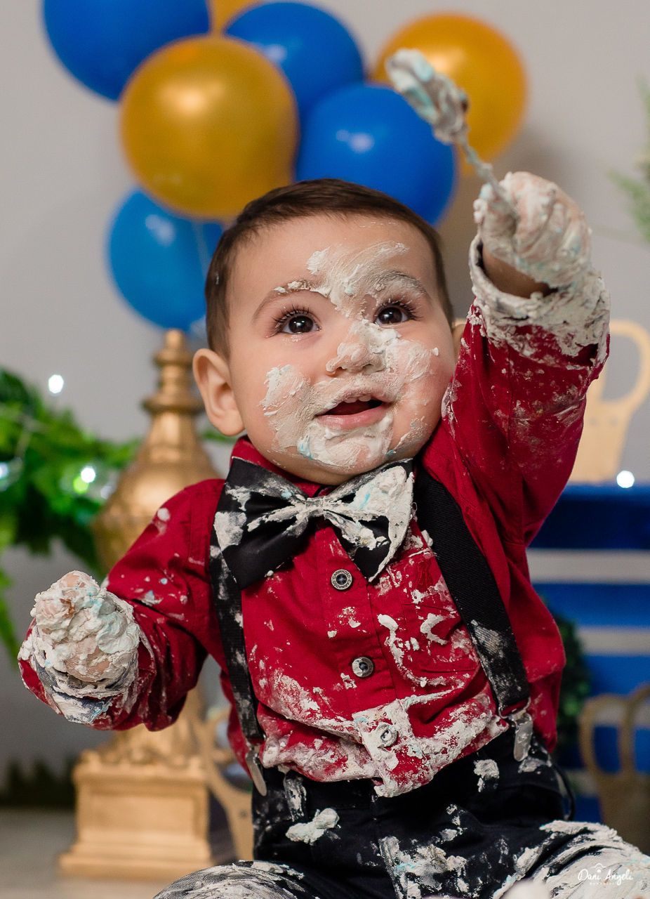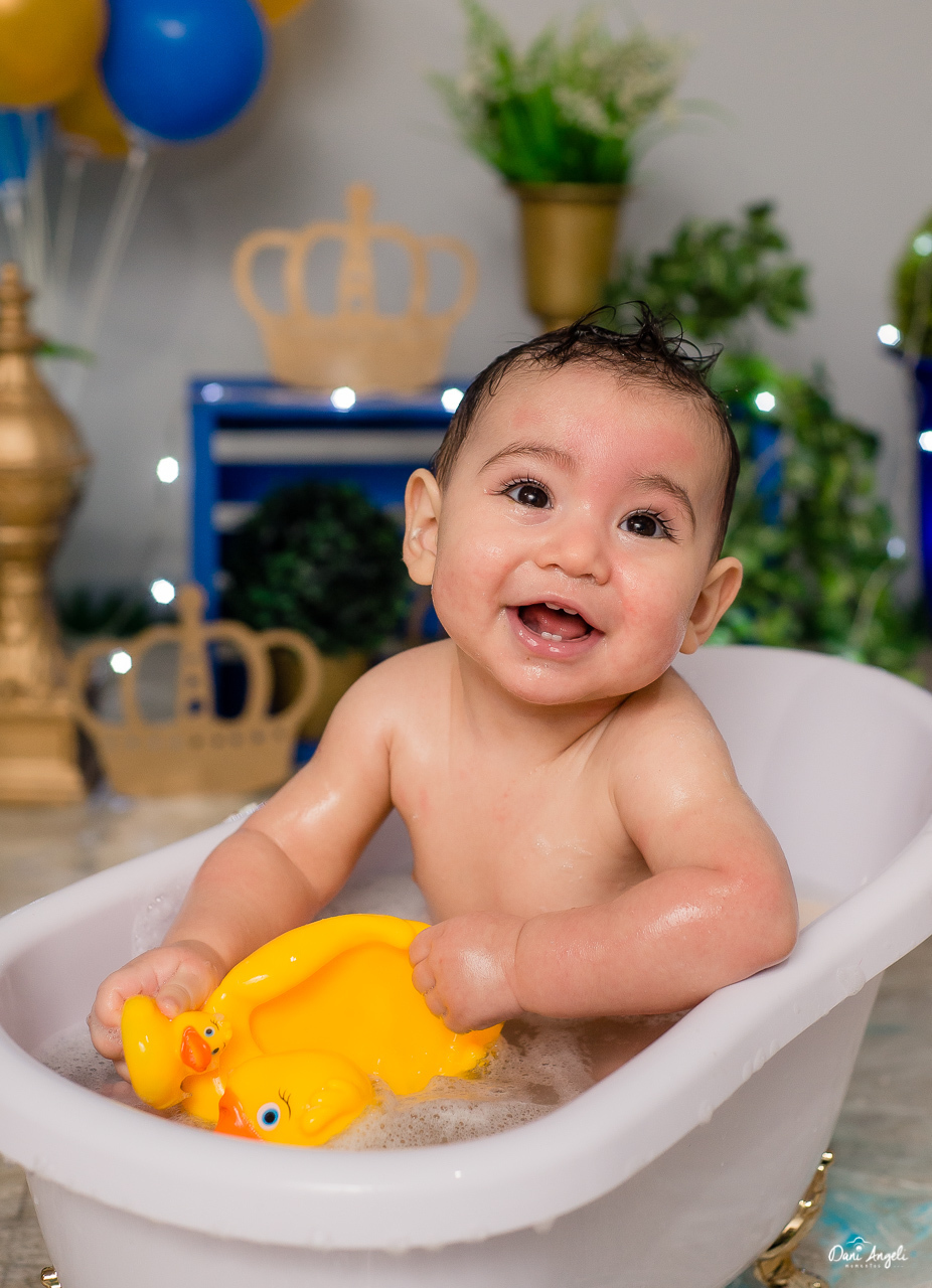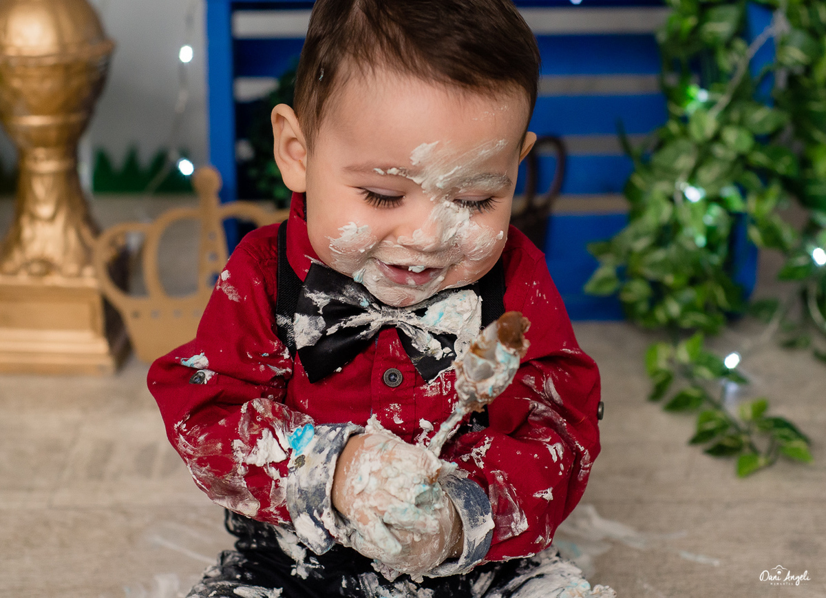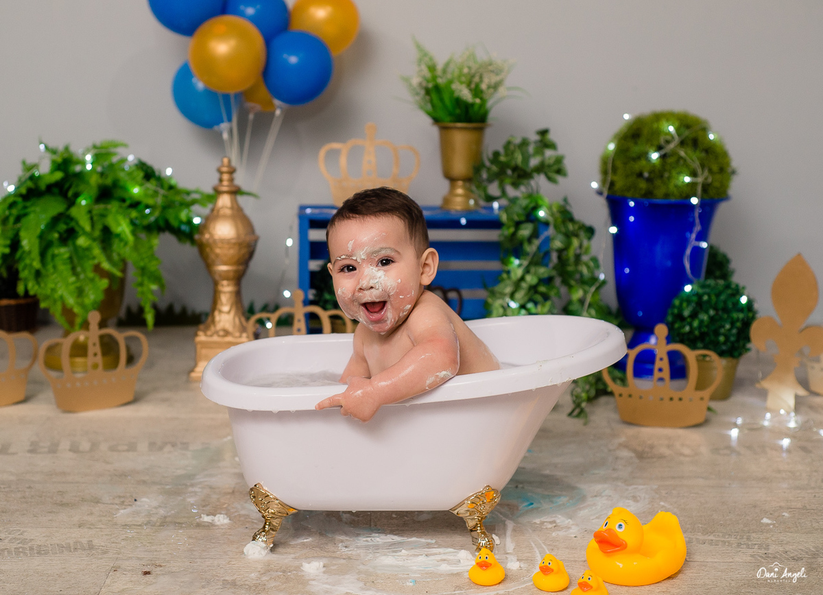 Brincou, investigou, comeu o bolo e amo tomar um bainho.