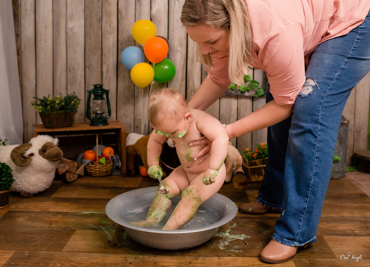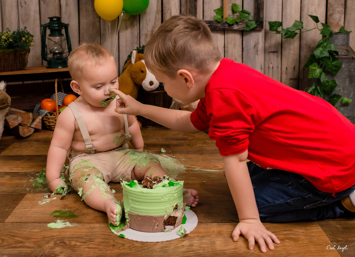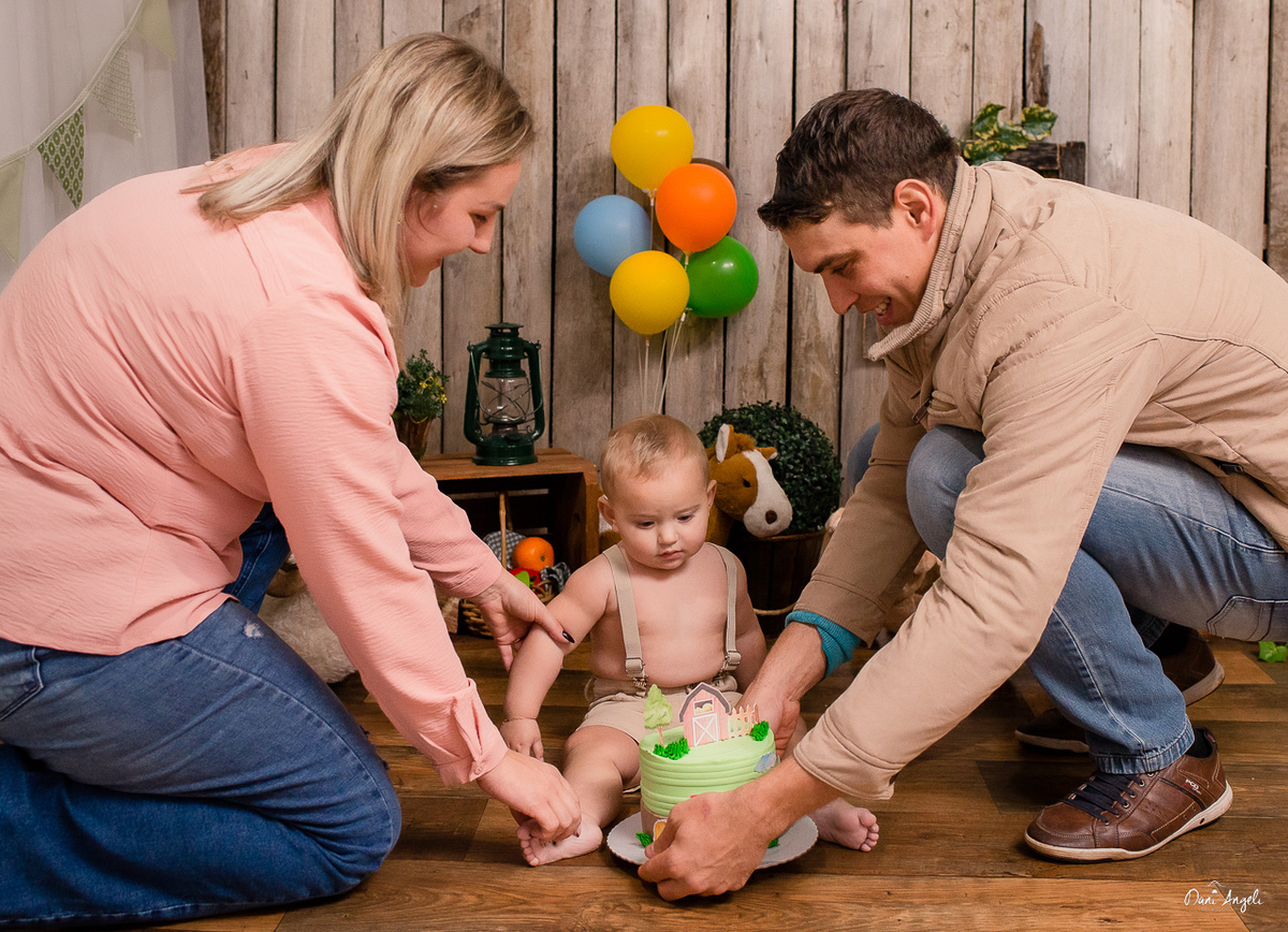 Amaram a brincadeira. Comeram bolo, aproveitaram o cenário e brincaram com o papai e mamãe.