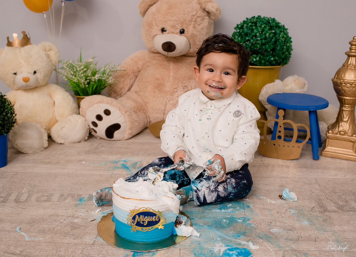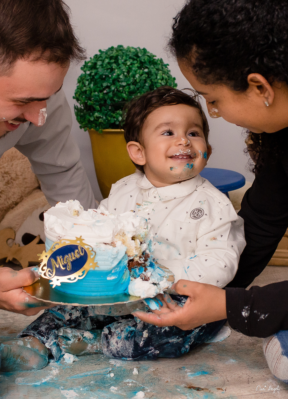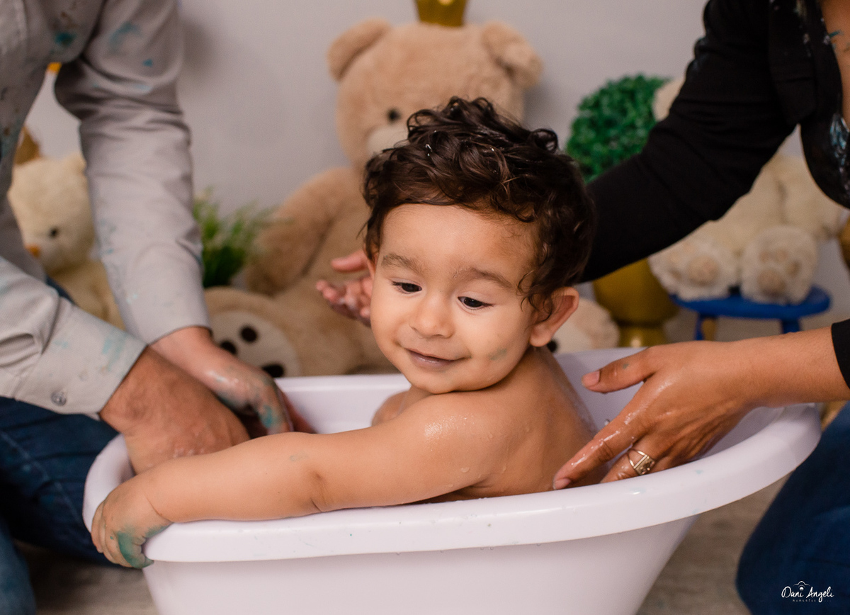 Não precisamos falar que o smash dele foi um sucesso. Amou o cenário, se lambuzou muito com o bolo e claro que ele fez um bagunção na hora do banho.