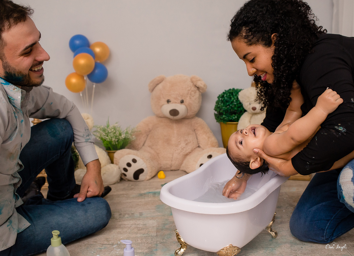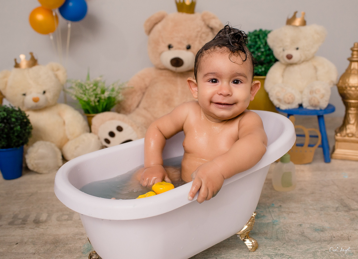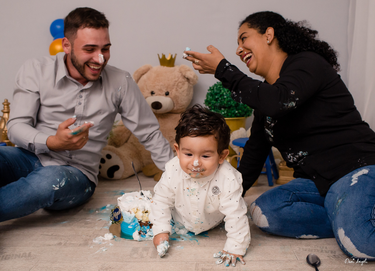 Não precisamos falar que o smash dele foi um sucesso. Amou o cenário, se lambuzou muito com o bolo e claro que ele fez um bagunção na hora do banho.