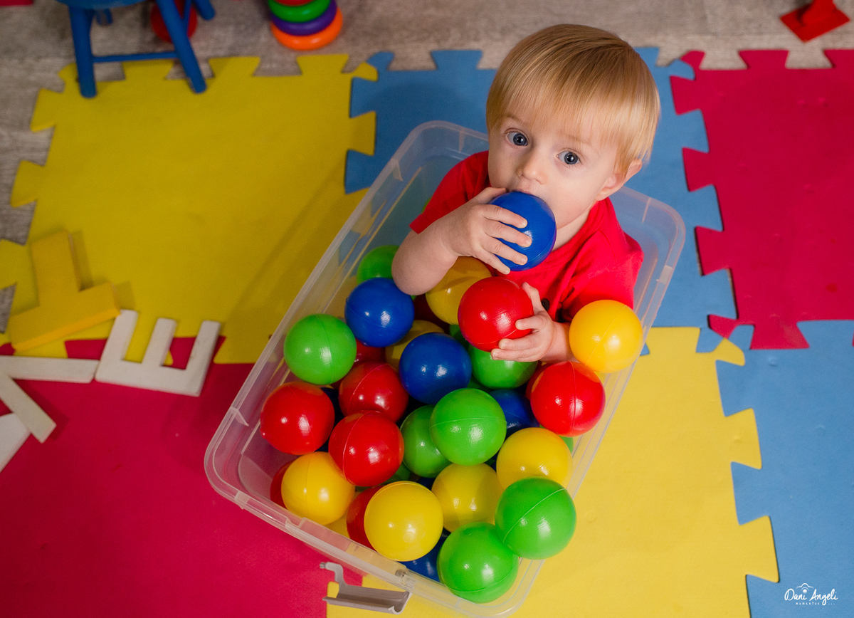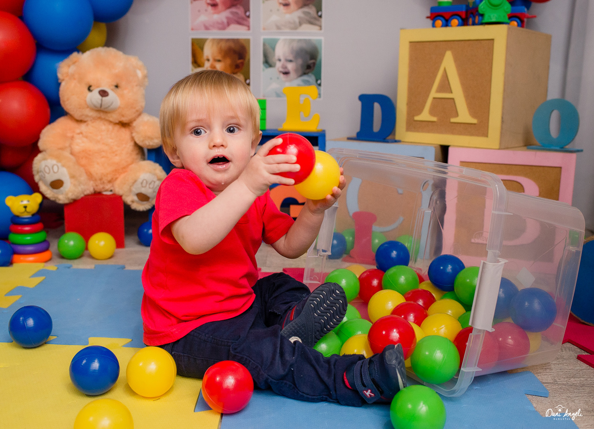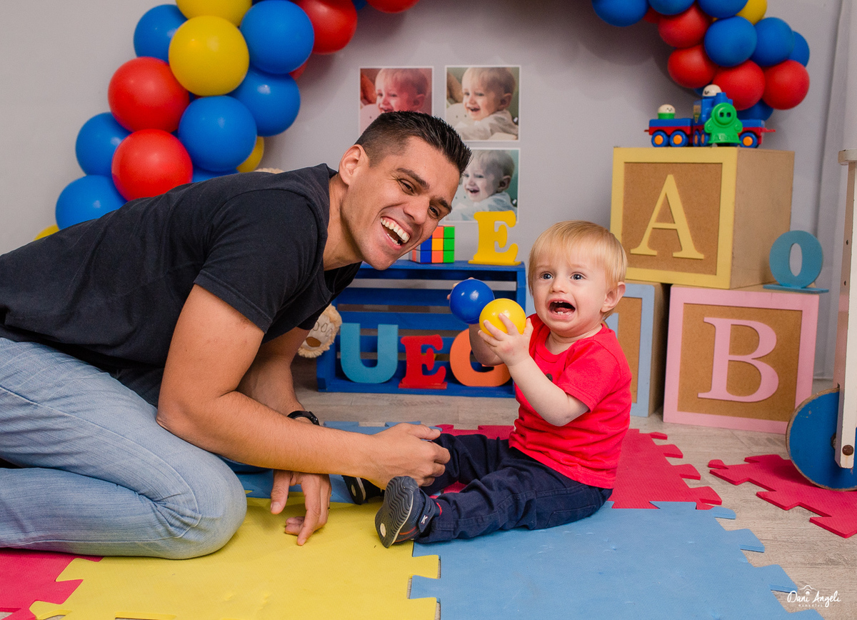 As brincadeiras foram livres e com muito incentivo. Em nenhum momento ele se sentiu inseguro, já que seus papais estavam sempre perto e dando aquele apoio.