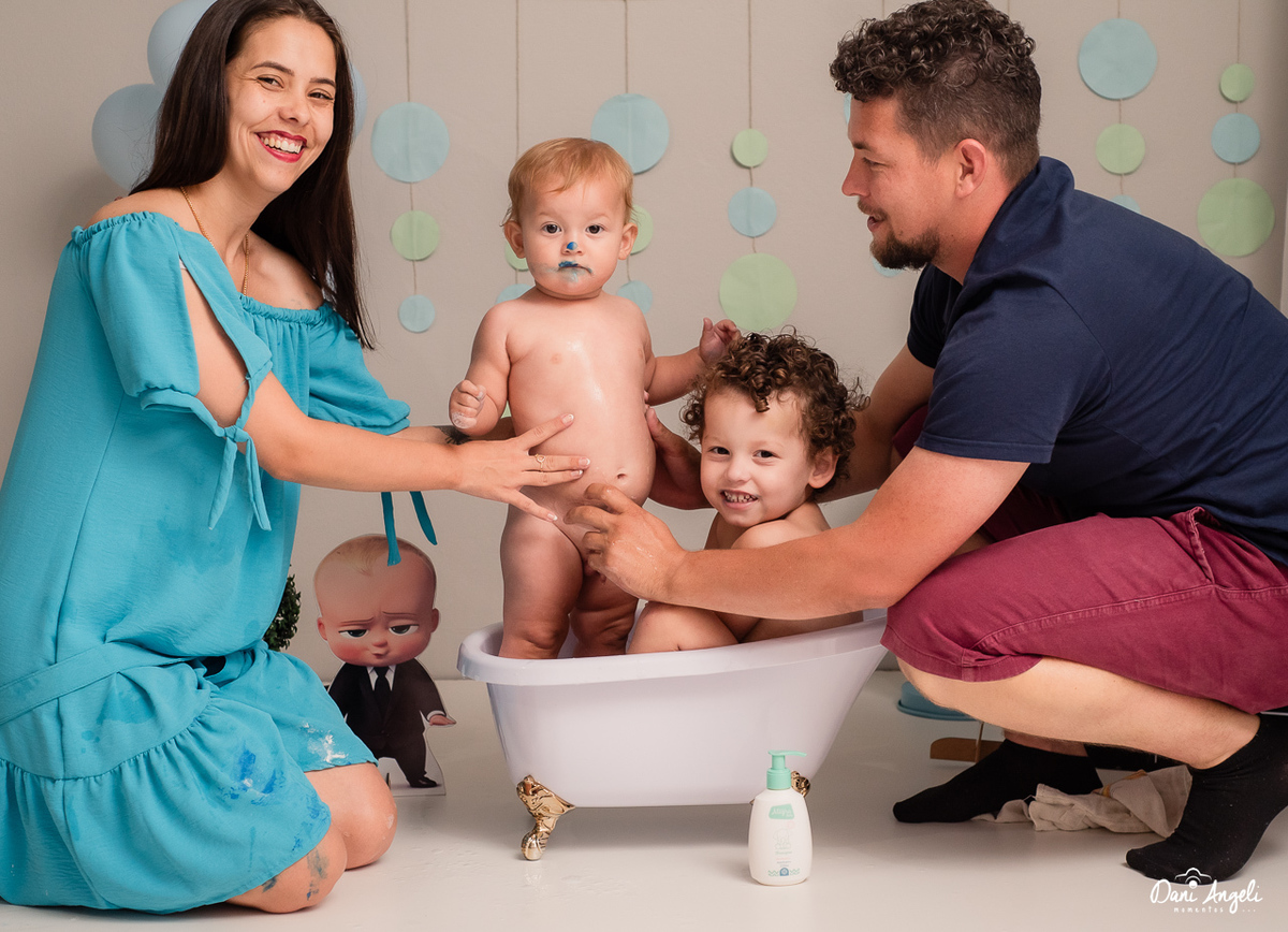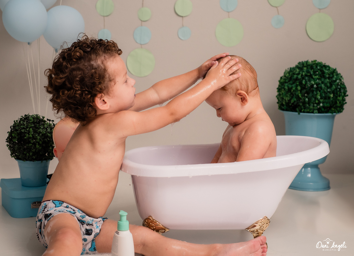 E, é claro, o mano mais velho não poderia ficar de fora dessa festa! A diversão foi garantida, com muitas risadas nas fotos clássicas, caretas na hora do bolo e até um banho na banheira, afinal, depois de tanta diversão, o Samuel precisava de um merecido "banhinho de alegria", hehehe.