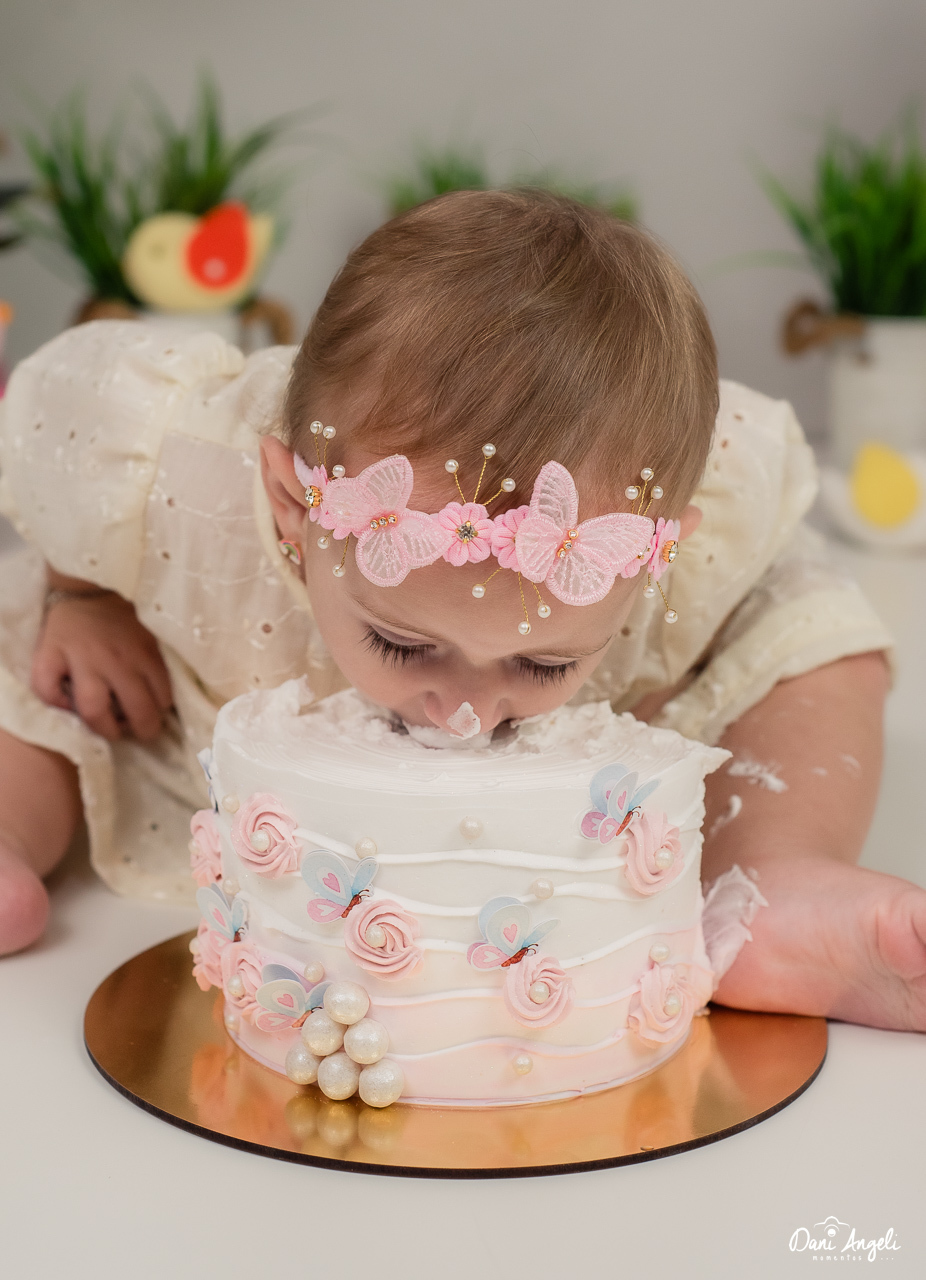 O ensaio Smash The Cake da Heloíse foi simplesmente encantador! Desde o primeiro momento, ela mostrou sua curiosidade e alegria, se divertindo com cada pedacinho do bolo. 🌈🍰