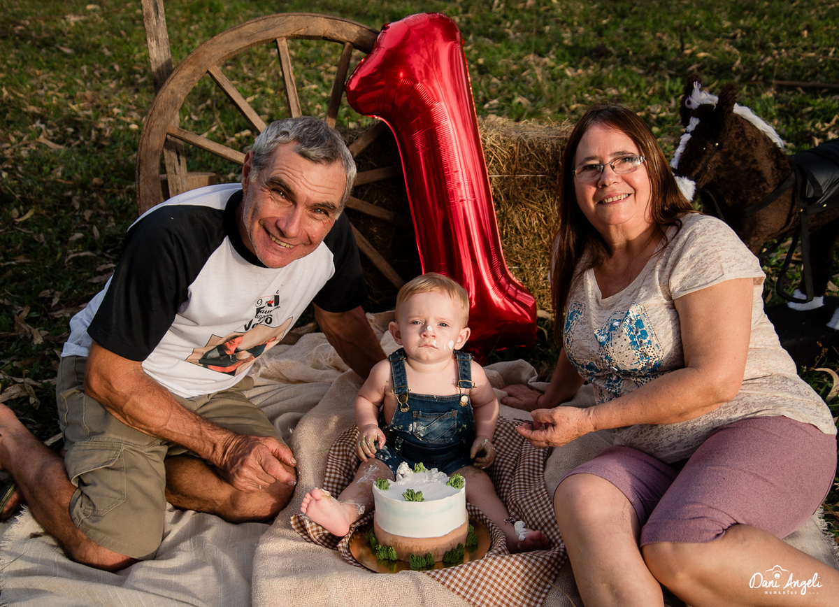 Em uma linda tarde de sol, tivemos a honra de ir até Capela de Santana para fotografar o Smash The Cake do Kauã. Claro, a família também entrou na diversão! 😂 Foi na propriedade da família, um lugar cheio de significado e amor para eles. O local escolhido para as fotos nos foi apresentado de uma maneira única: de trator! Que experiência incrível, né? O avô do Kauã faz tudo pelo neto, e não foi diferente dessa vez. Os pais da Leisi participaram juntos, e foi muito divertido ver o Kauã, que é um verdadeiro grude com suas avós, curtindo cada momento.
