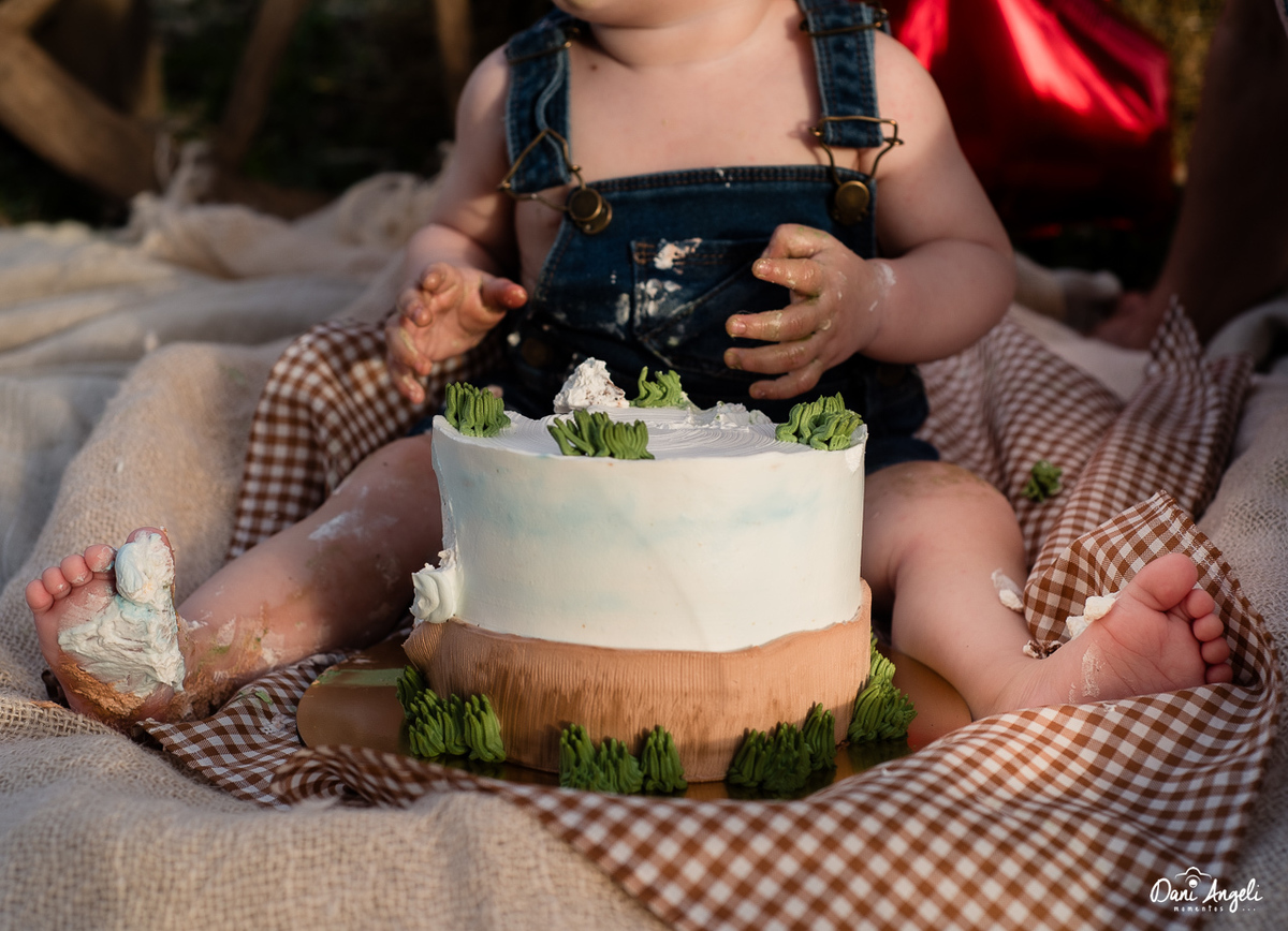 Kauã posou para as fotos, as vezes reclamando um pouco pois queria brincar. Mas quando chegou a hora de destruir o bolo, a bagunça foi geral! Todos entraram na brincadeira e se lambuzaram juntos, inclusive as avós. Foi uma festa só! 😂