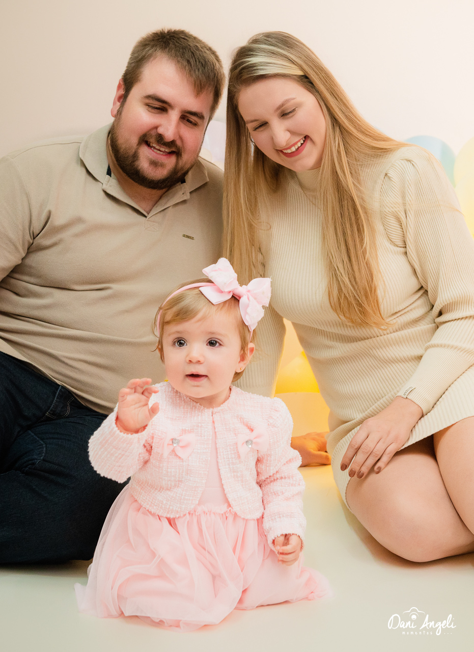 A mamãe trouxe a Sarah toda linda, e cada clique revelava ainda mais o brilho dessa menina risonha. Teve fotos dela sozinha, dela com a família, e claro, muitos sorrisos que se transformaram em lembranças eternas.