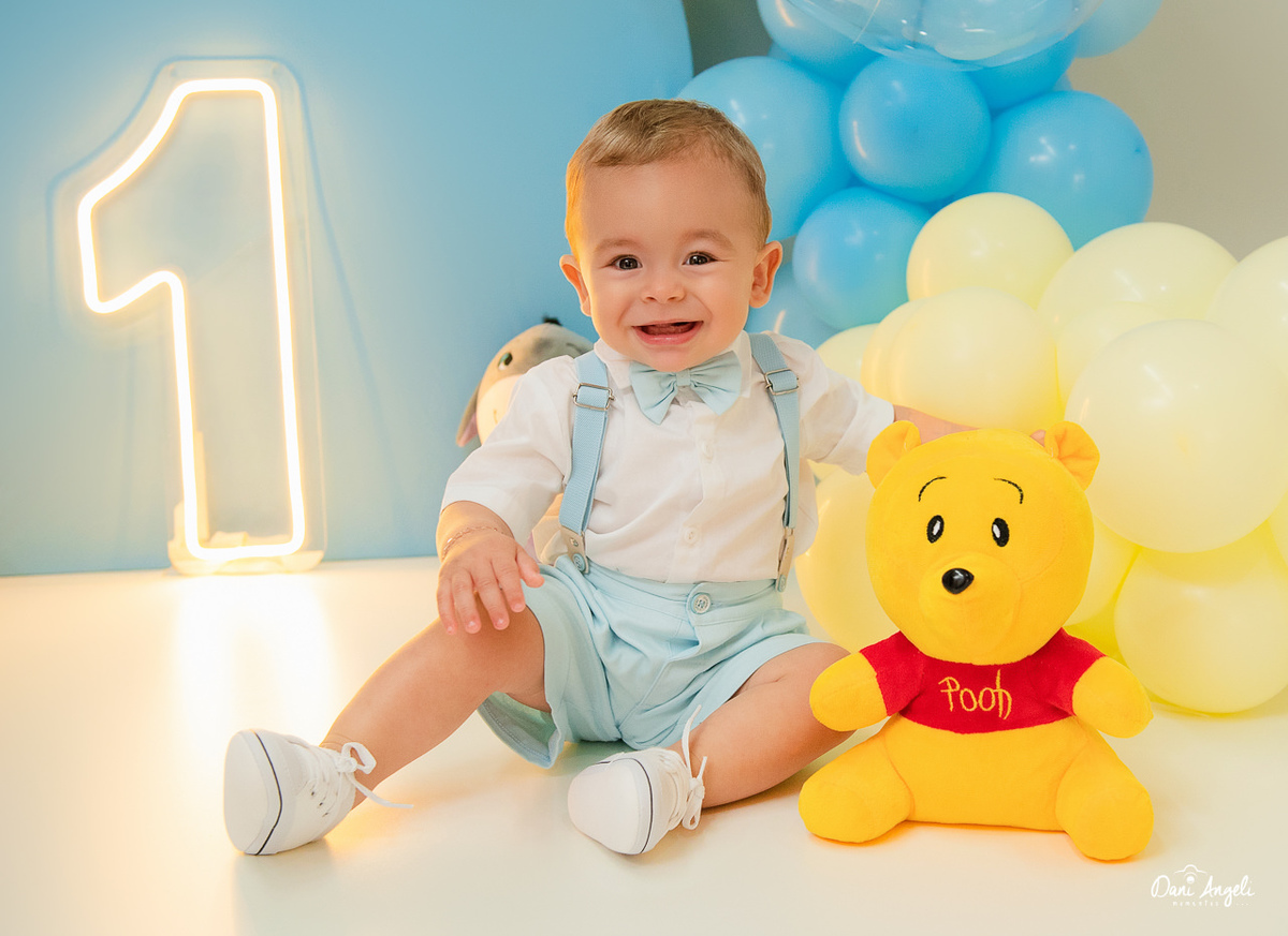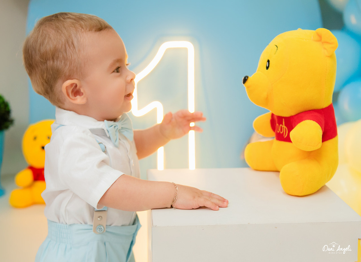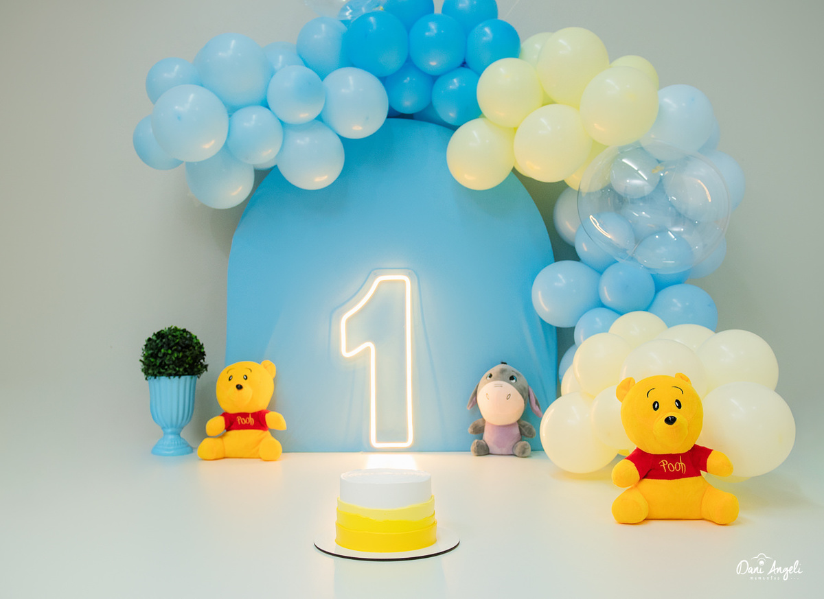 O cenário de Ursinho Pooh trouxe aquele clima leve, doce e cheio de encanto.