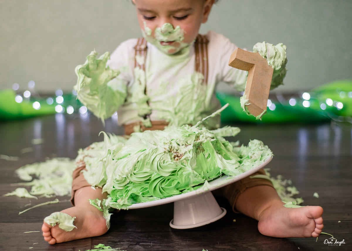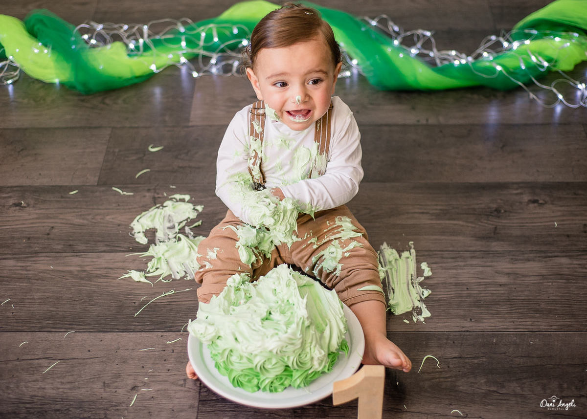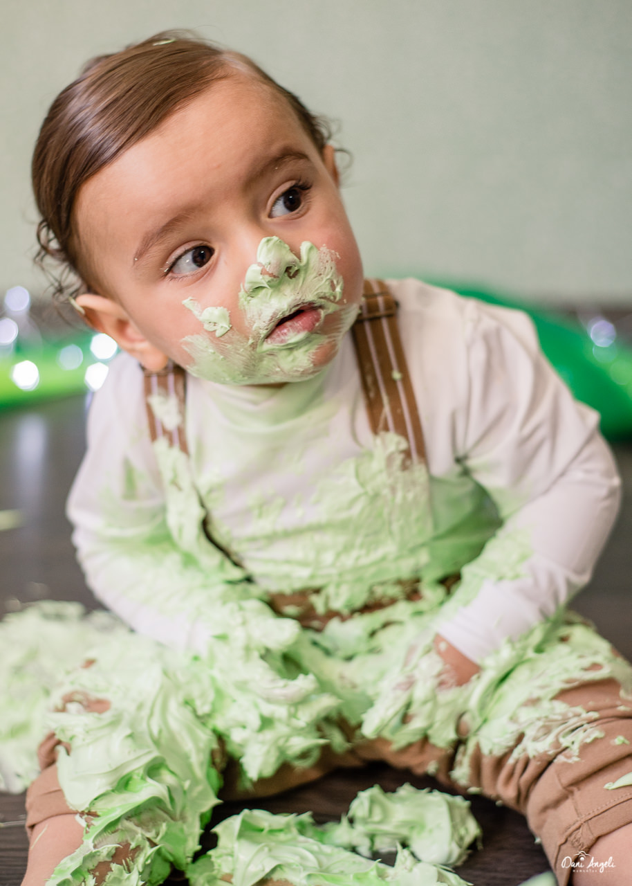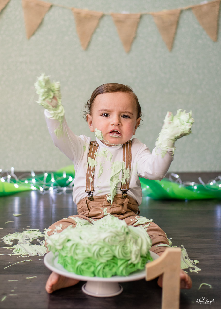 Em seu ensaio Smash The Cake, ele amou o bolo, comeu, brincou, se lambuzou. Diversão garantida.