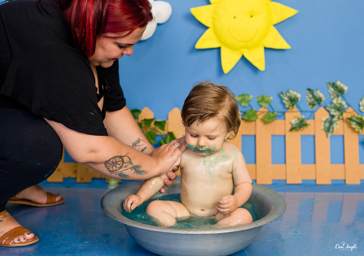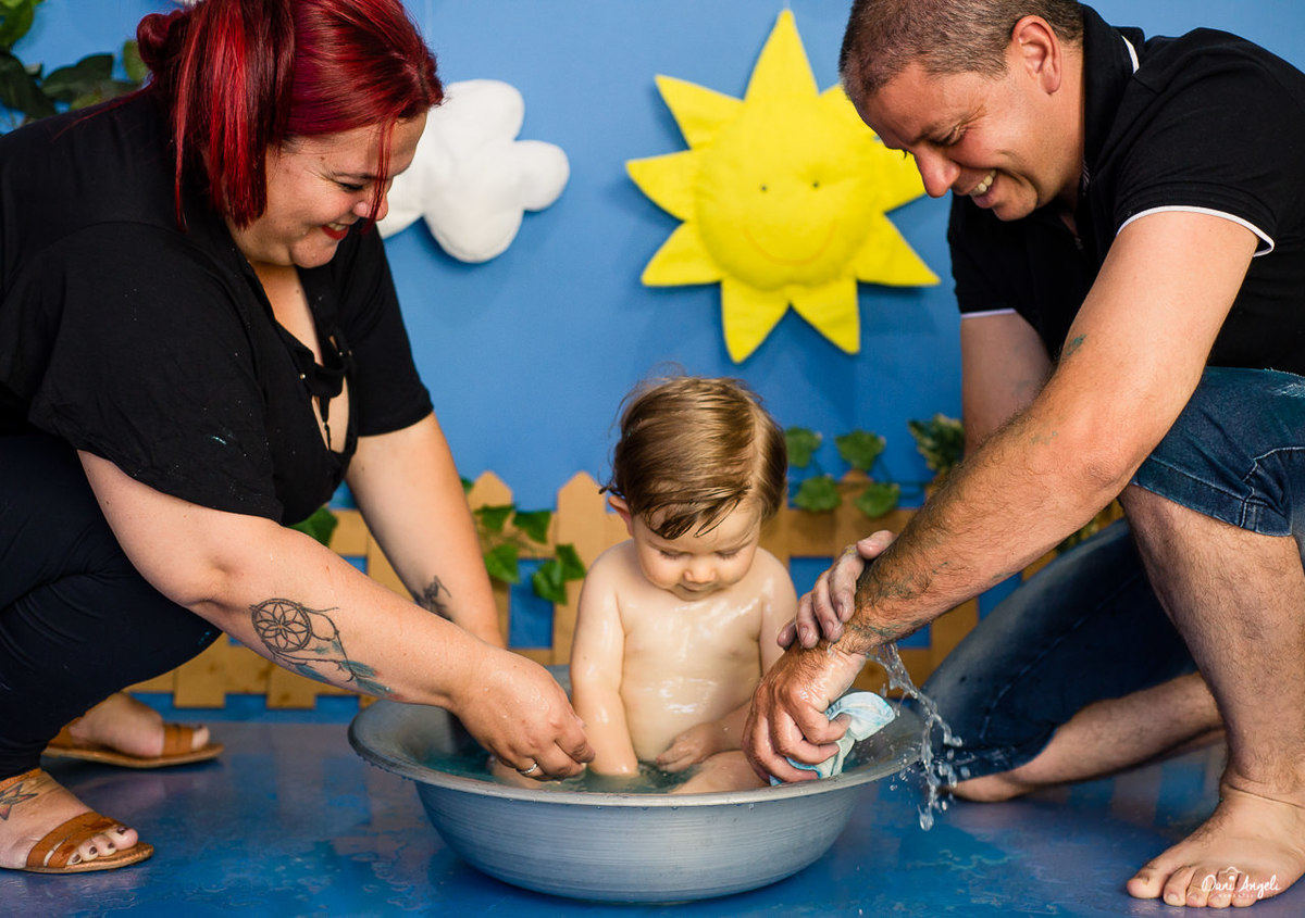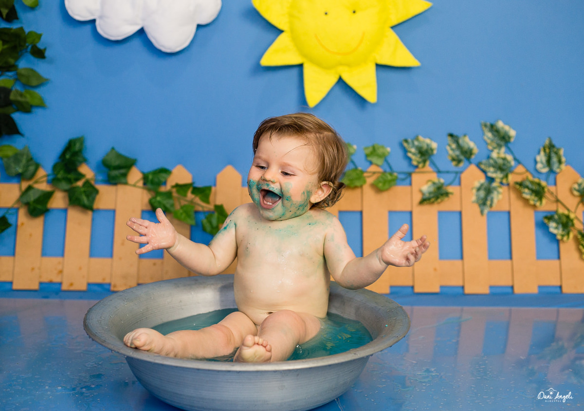 Na hora do banho mais alegrias. Fez bagunça e ainda sobrou banho pra mais gente.