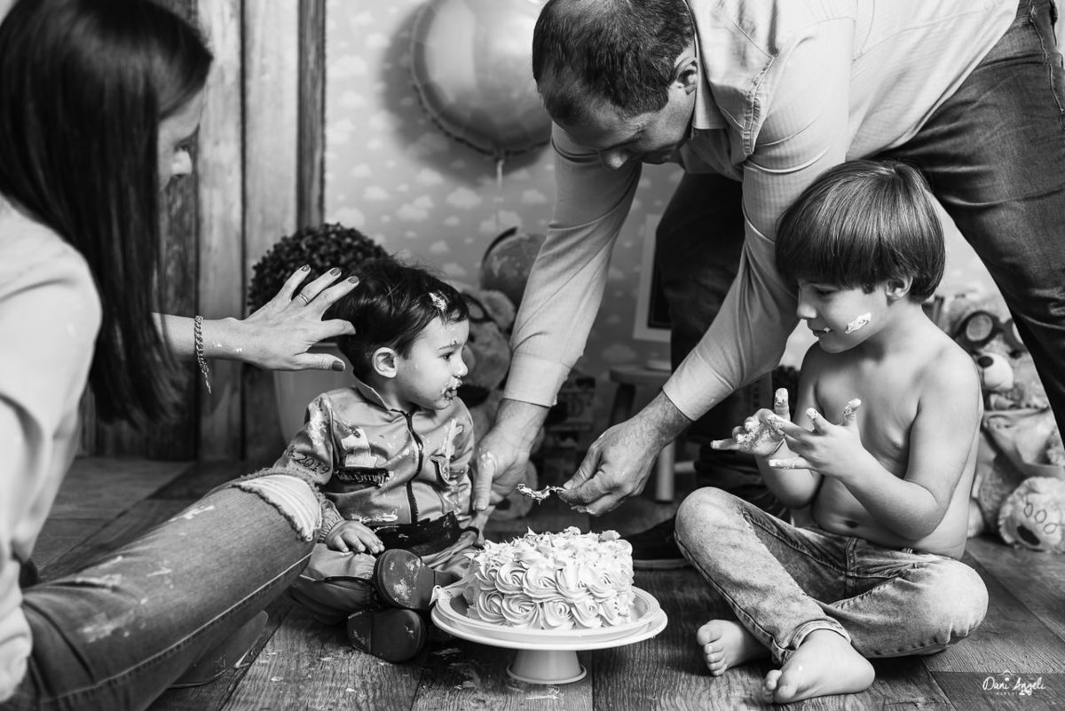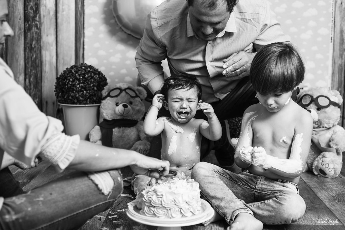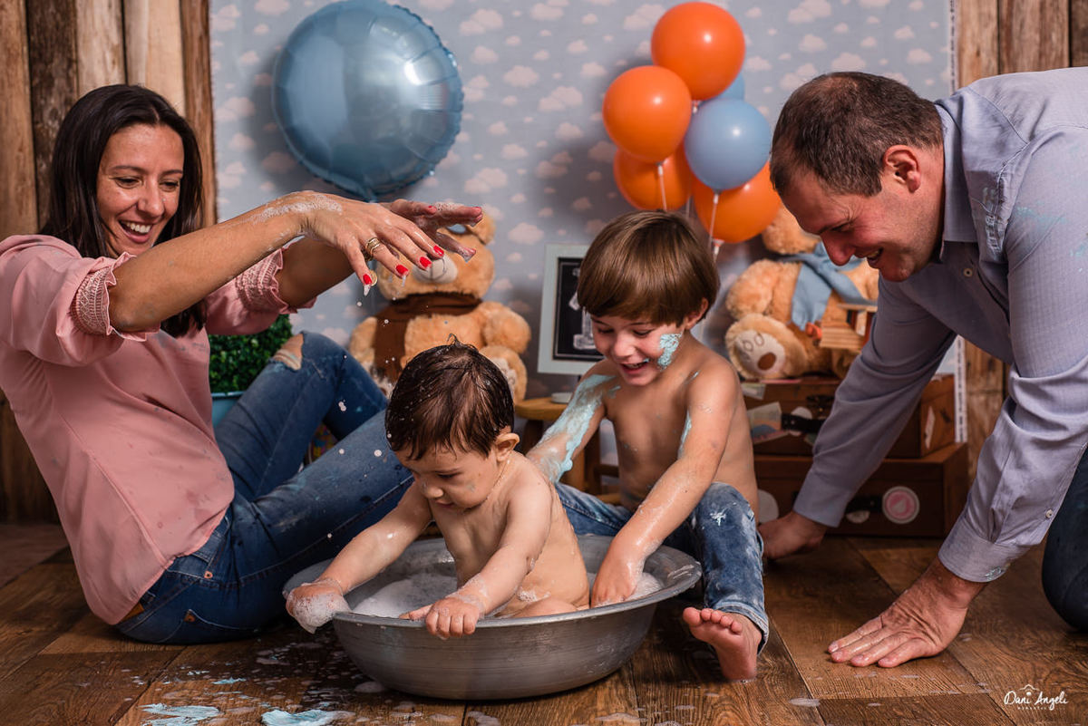 Com a ajuda dos papais e do manão, a coisa fluiu e ele foi se sentindo cada vez mais confortável, até a bagunça tomar conta.