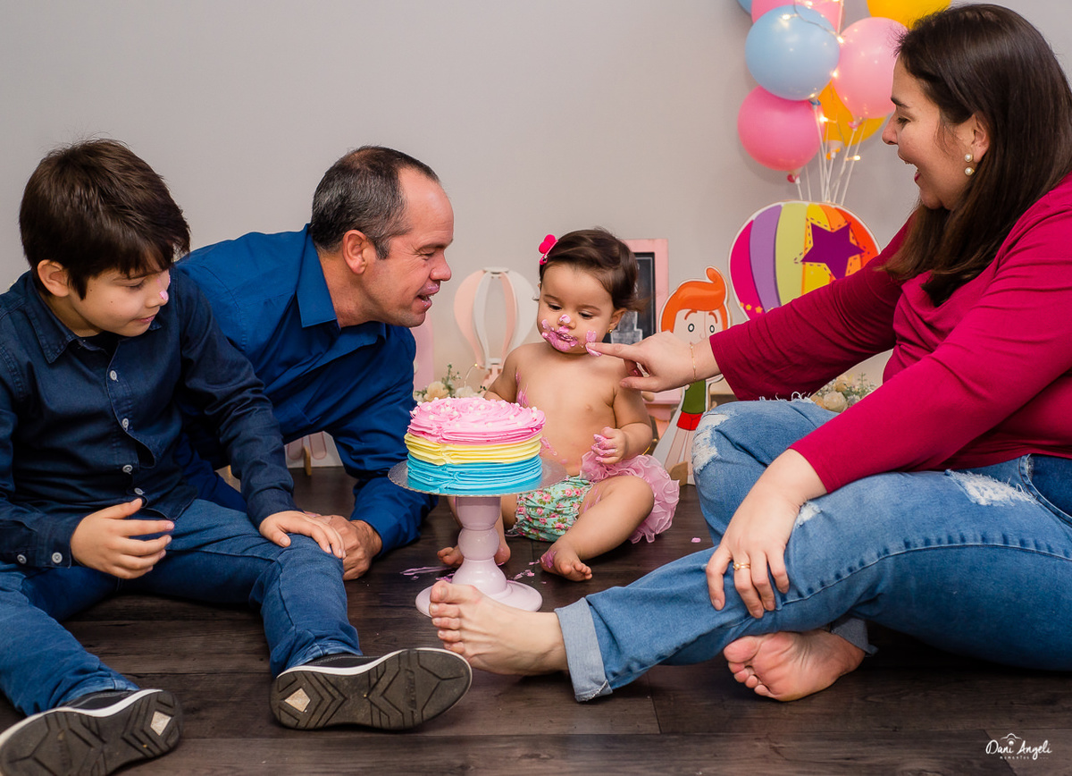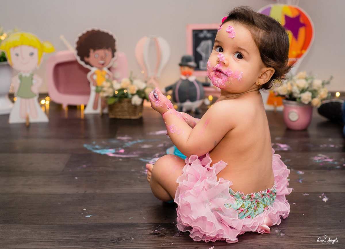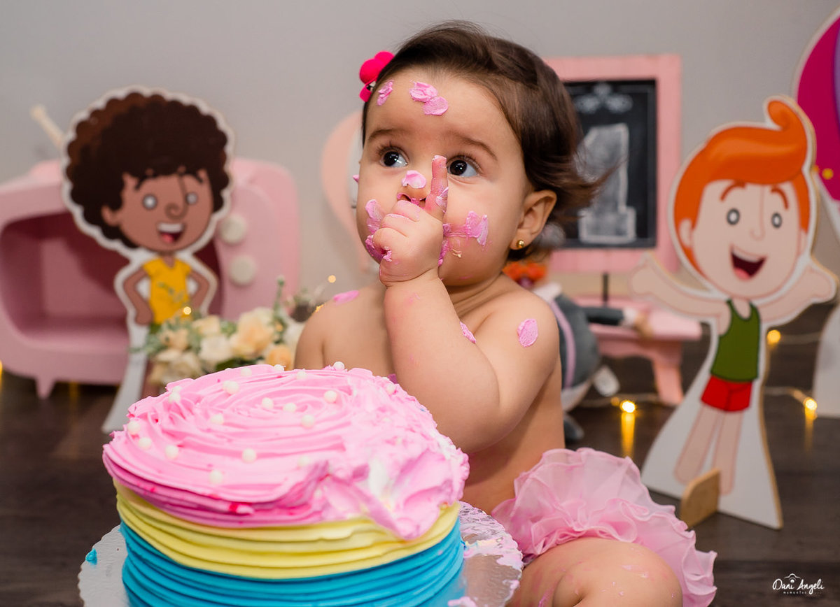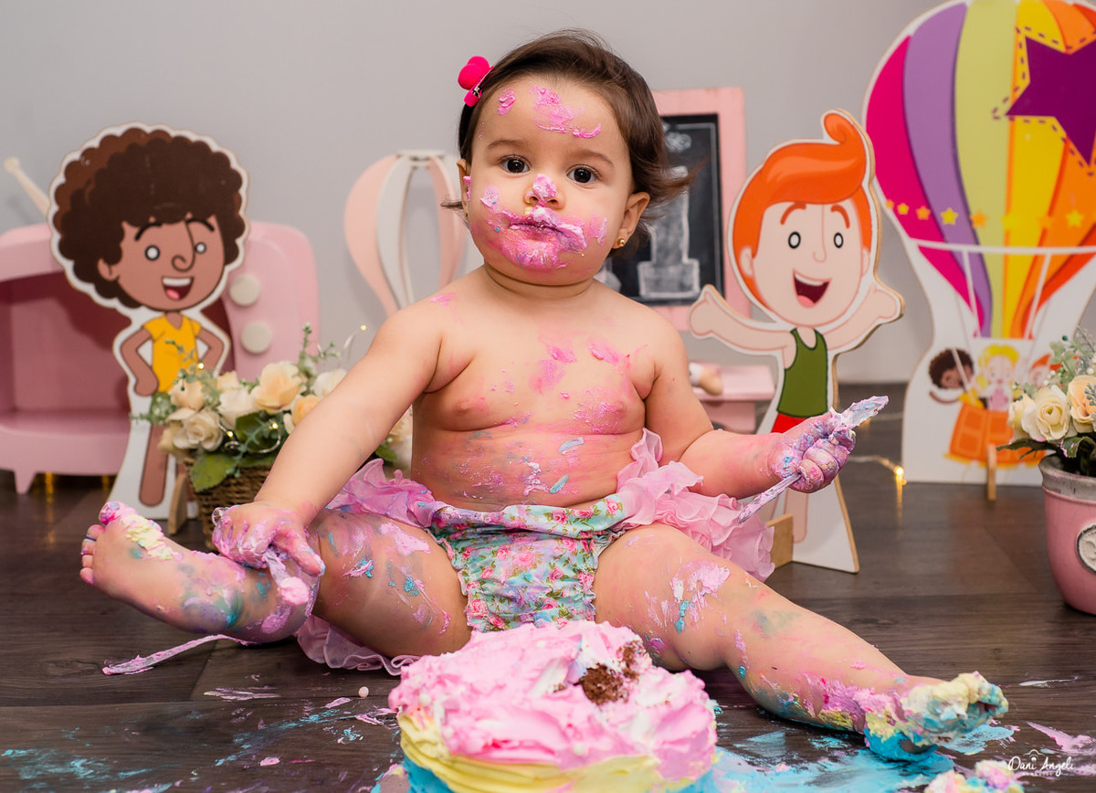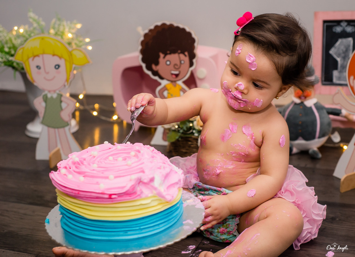 O Smash the Cake é como um pré 1 aninho, esperamos que no dia do aniversário ela consiga deixar o bolo ao menos chegar até o parabéns, Kkkkkk!