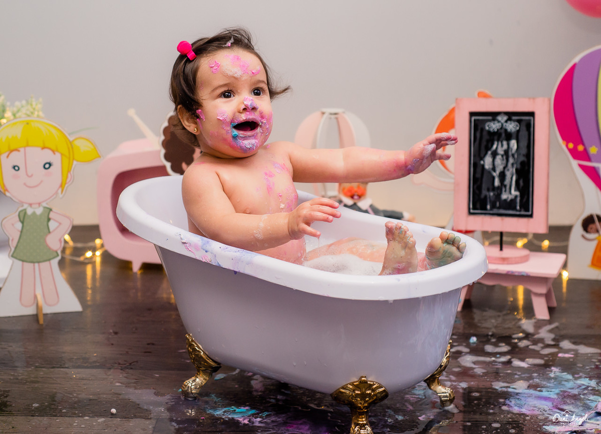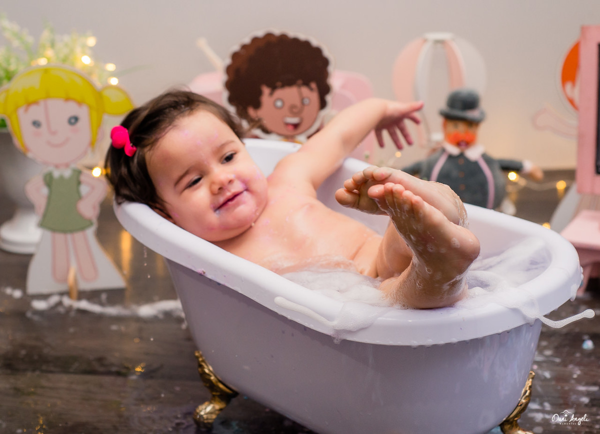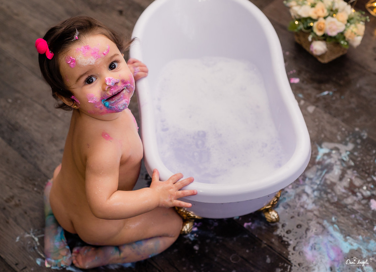 De resto, deu sorrisos lindos para as fotos, amou o docinho e gostou mais ainda do banho.
