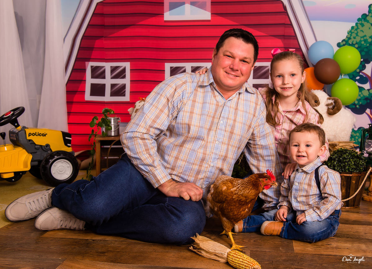 E claro que o Guilherme trouxe junto sua galinha de estimação. A danada participou de todo o ensaio. Mas na hora do bolo foi melhor retirar ela, pois ela estava super a vontade, acreditamos que ela comeria mais bolo que o Gui.