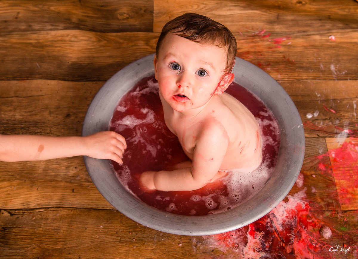 Chegou a hora do banho e foi mais legal ainda. Ele ama tomar banho, difícil é tirar ele do banho depois.
