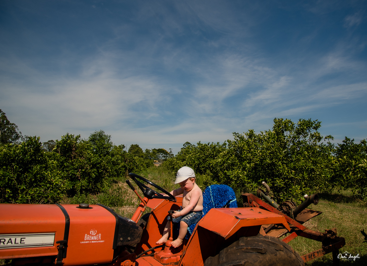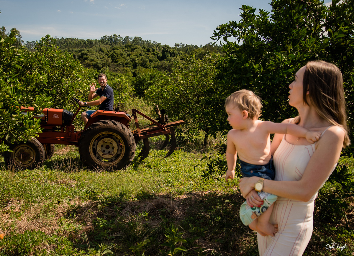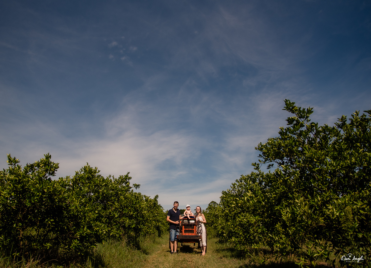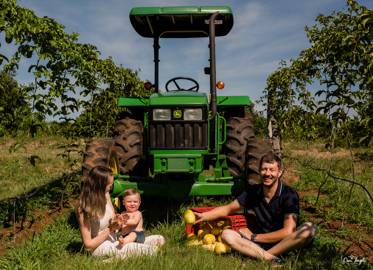 A ideia era fotografar na propriedade da família pertinho das frutas que a família produz.