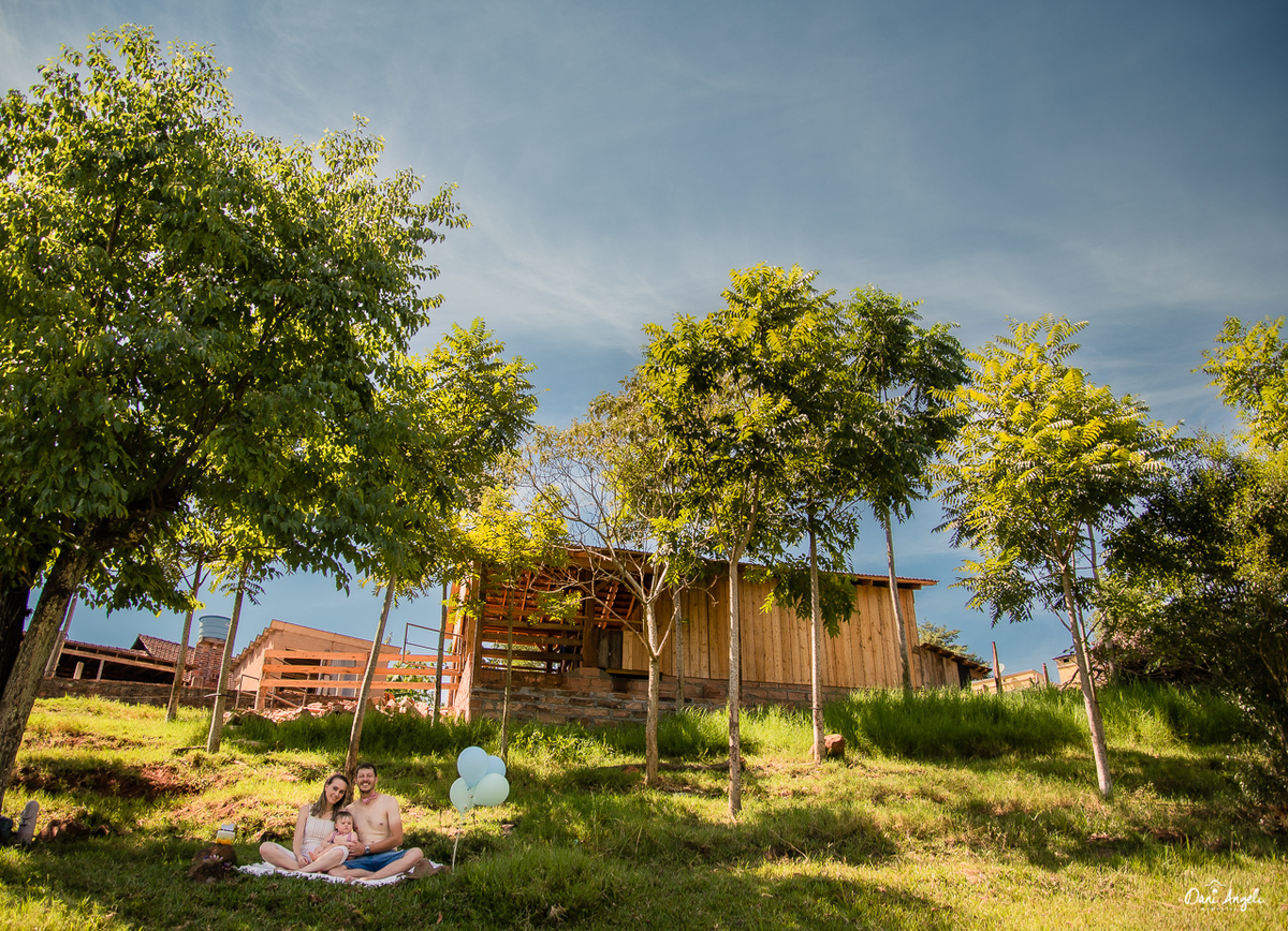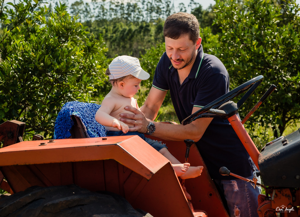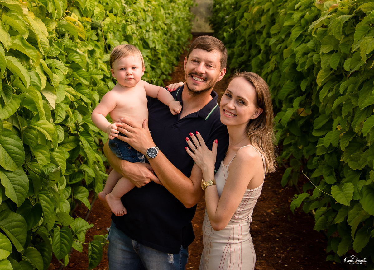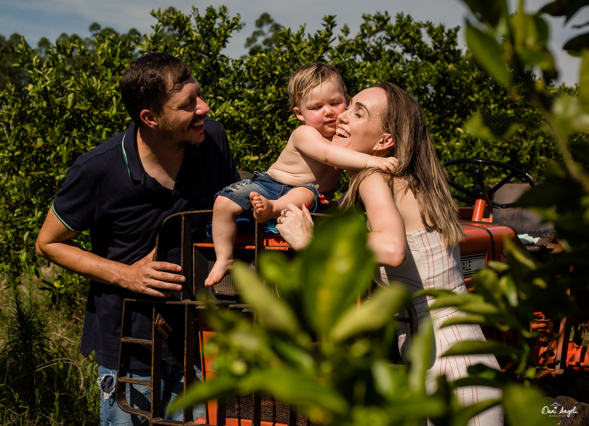 A ideia era fotografar na propriedade da família pertinho das frutas que a família produz.