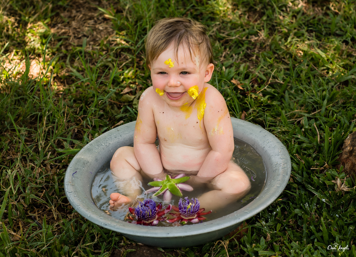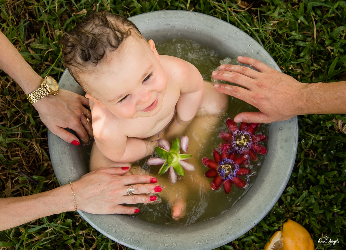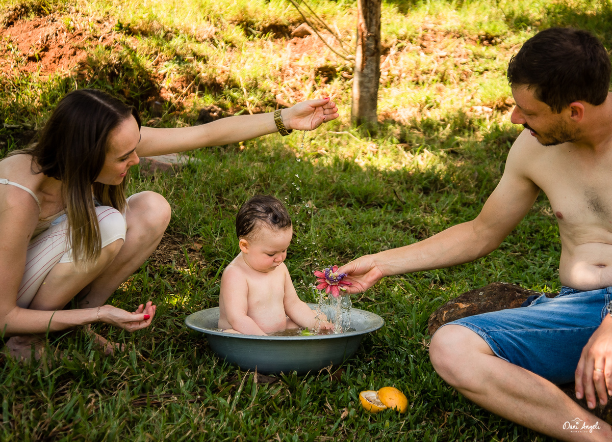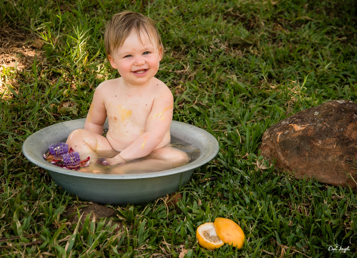 Mas ficou lindo. O Beni sempre se diverte, é um menino curioso e adora tocar nas coisas, nas frutas, na terra, na água, em tudo. Então sempre rendem fotos perfeitas dele.