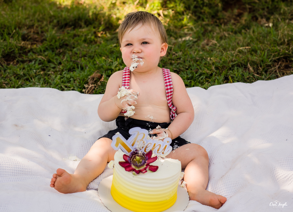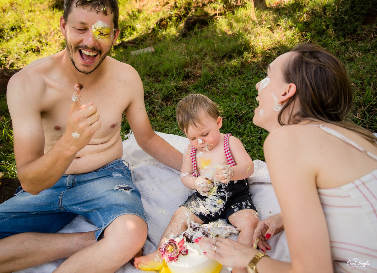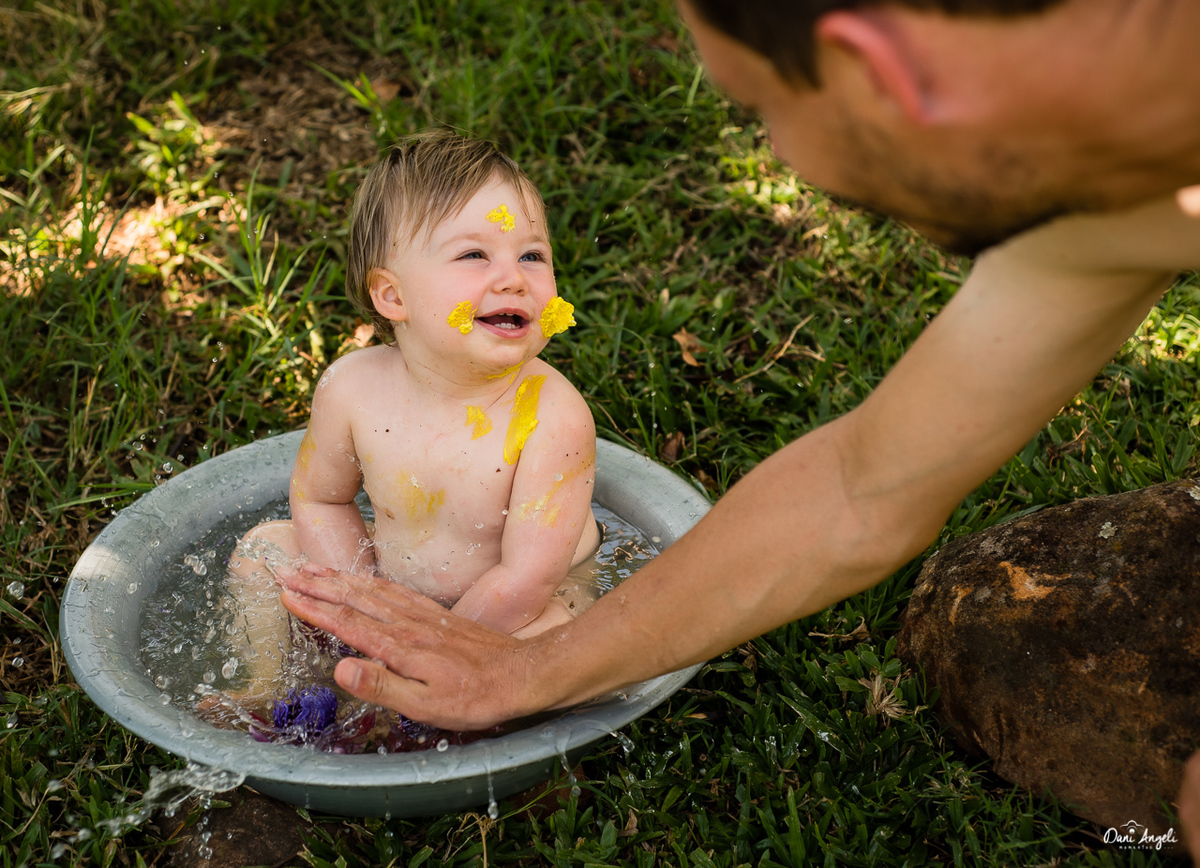 Chega a hora tão esperada do bolo, o Smash The Cake. Nunca sabemos a reação dos pequenos. E para nossa sorte, o Beni mais uma vez se divertiu como nunca. Se lambuzou, comeu, brincou, dividiu o alimento com os papai, e claro quando chegou a hora do banho ficou melhor ainda.