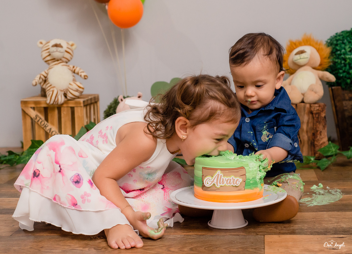 O Álvaro sempre se diverte, e desta vez não foi diferente. Ele brincou com tudo que tinha no cenário, montado especialmente para ele, chamou a família para fotos. Sorriu, e comeu muito bolo.