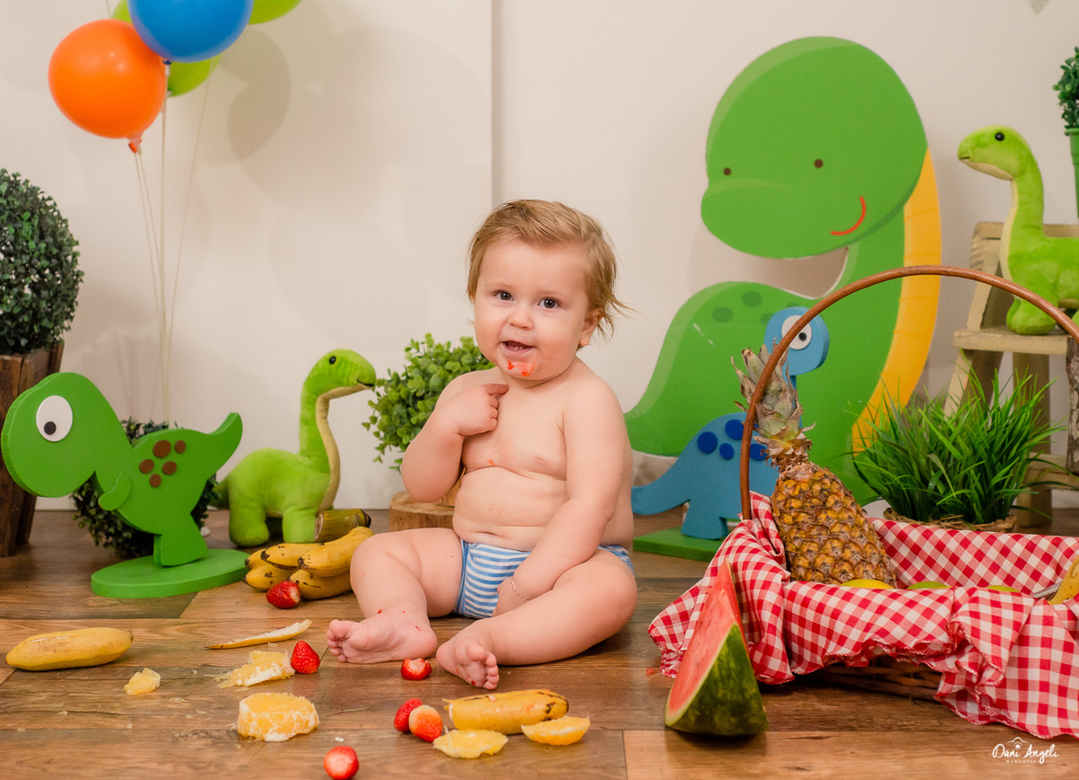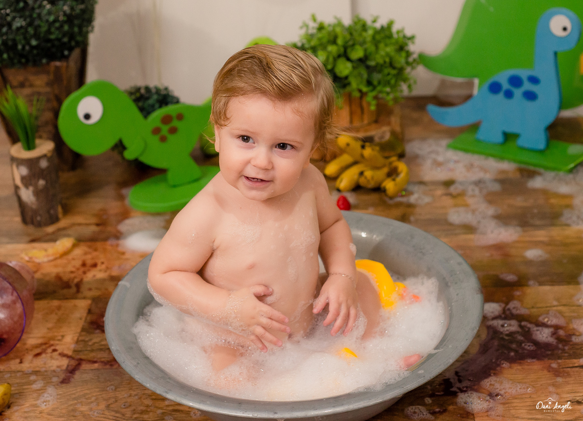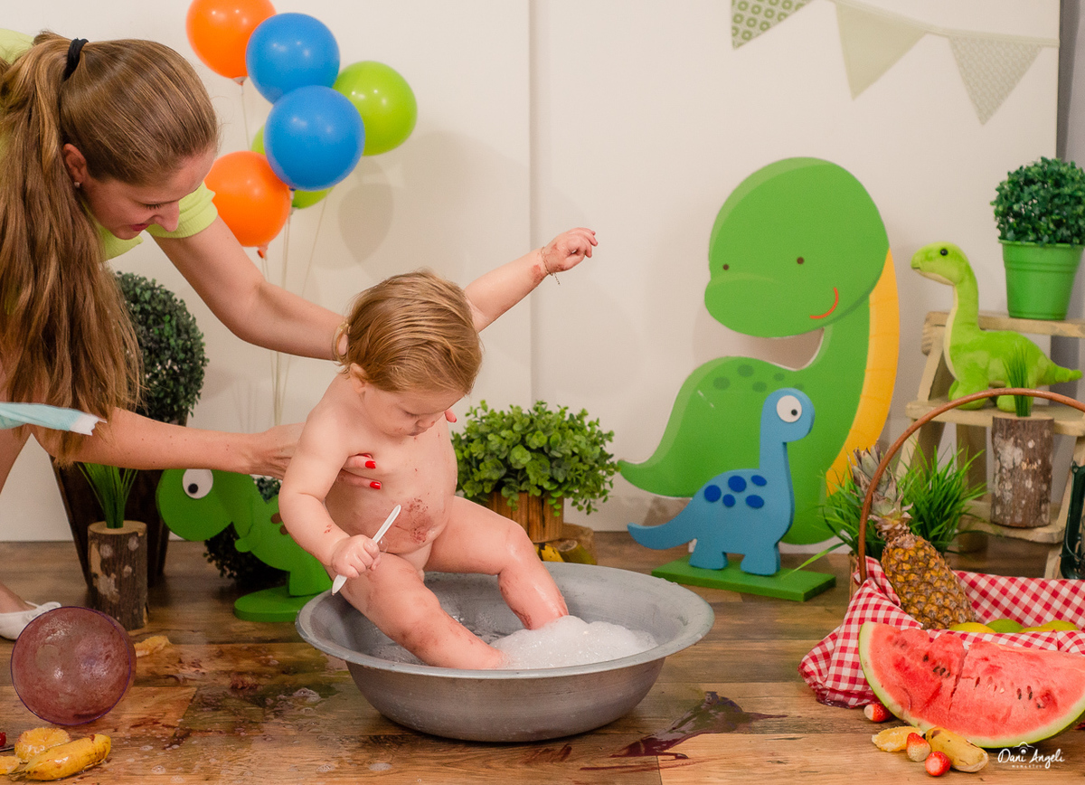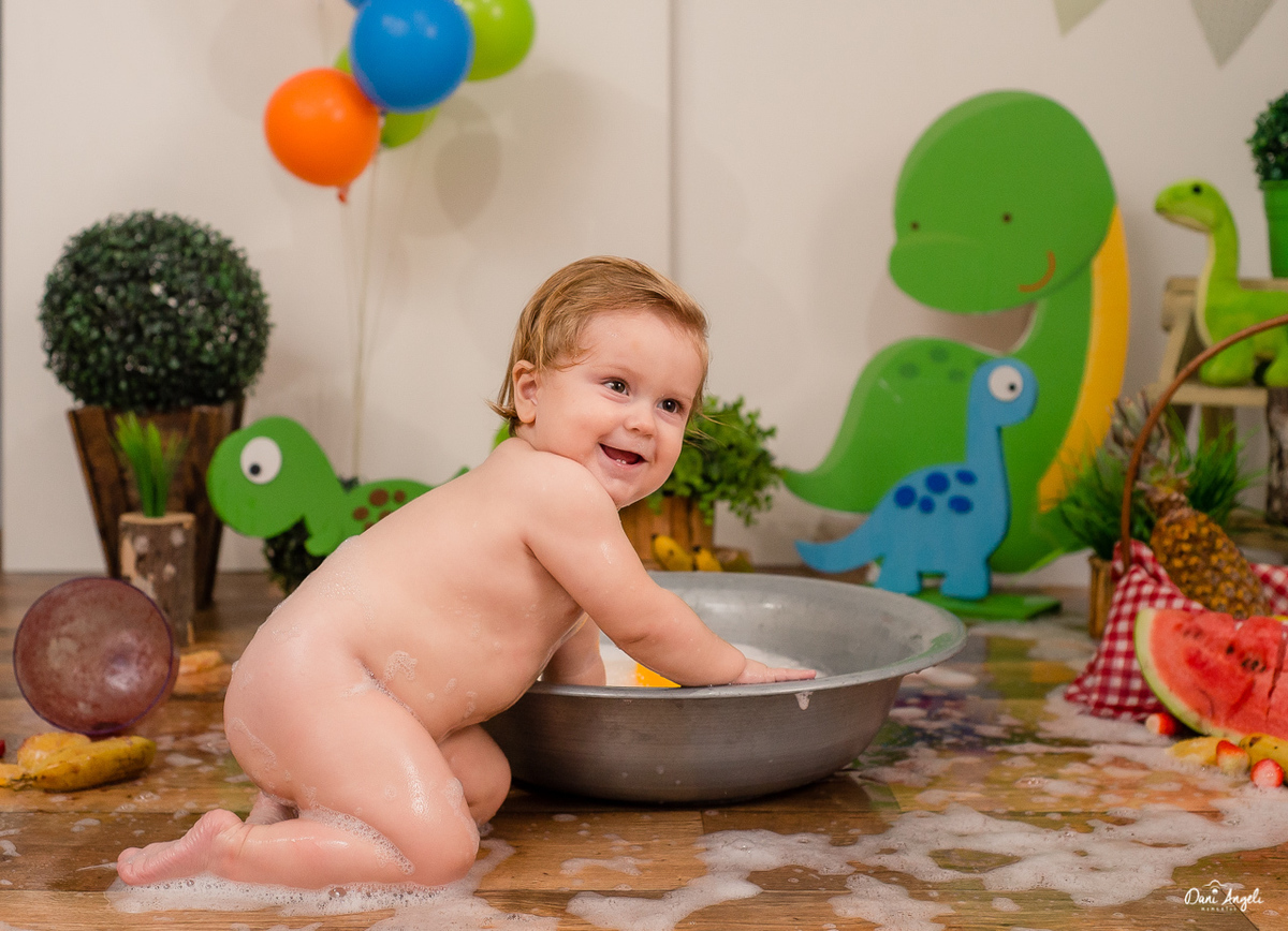Ele gosta de frutas, ele adora açaí e ele ama um banho.